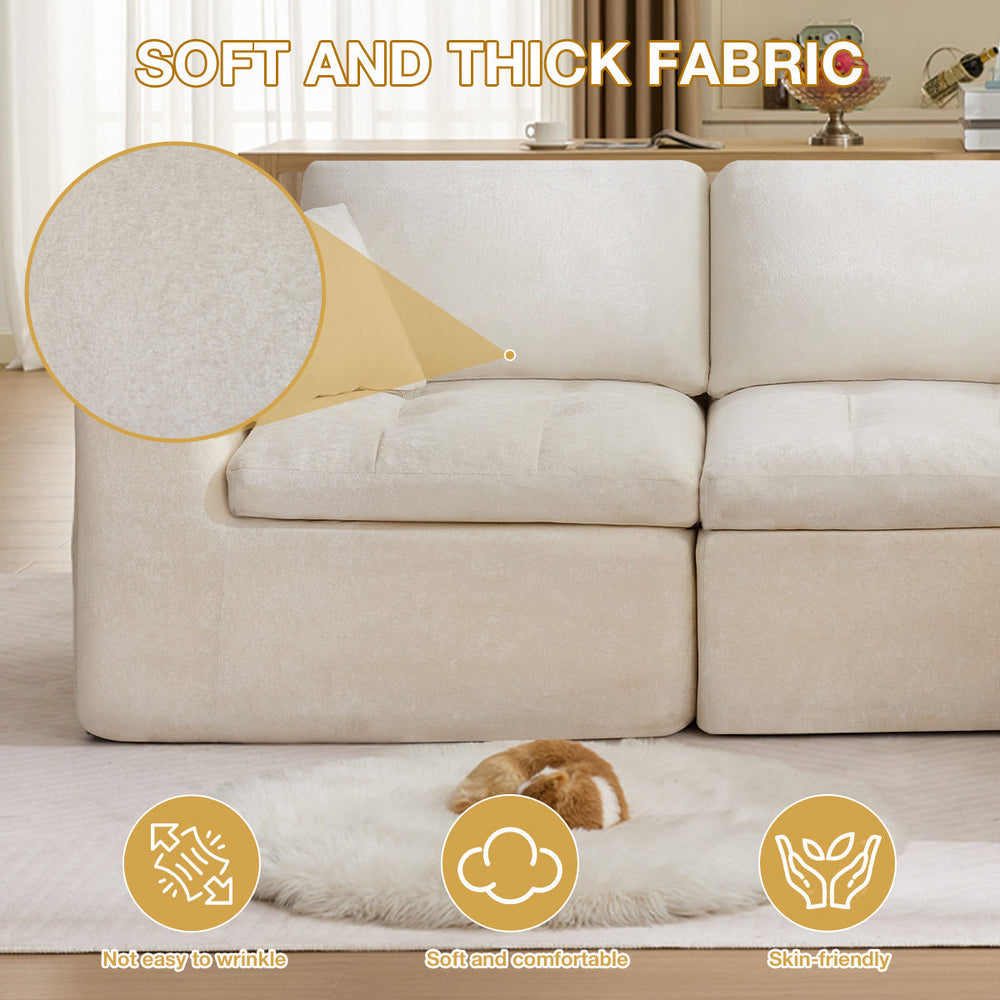 - 【Luxuriously Soft Chenille Fabric】Crafted from premium chenille fabric, this modular cloud sofa delivers an exceptionally soft and comfortable feel. This boneless modular sofa is not only supremely comfortable but also highly practical. Our fabric is durable, breathable, and pet-friendly, ensuring you won't feel stuffy even after hours of sitting or lounging. Whether you're watching TV, reading a book, or taking a nap on this sofa, it offers the ultimate in comfort.