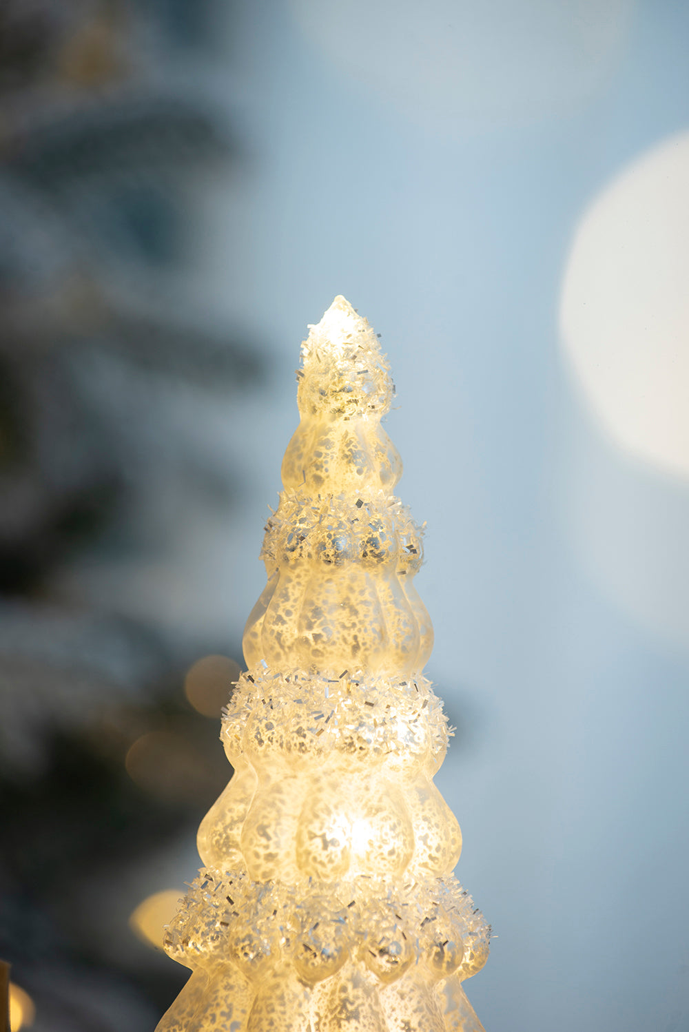 Crafted from durable, translucent glass, this 8.3-inch cone tree features a modern geometric silhouette that refracts light like frost on a winter window. Its minimalist style blends seamlessly with any theme—from glam to rustic.
