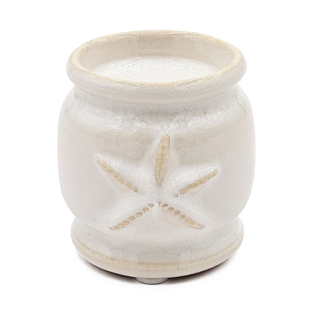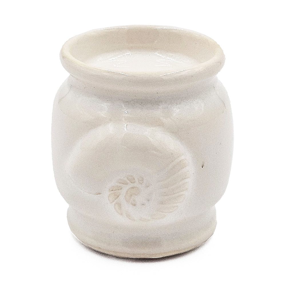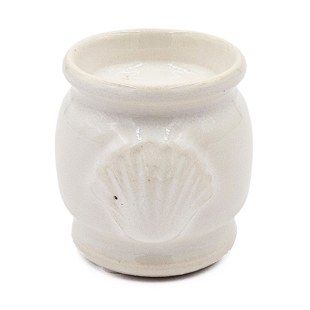 - Made from 100% ceramic, this tealight holder comes in a sleek cream finish with seashell details.