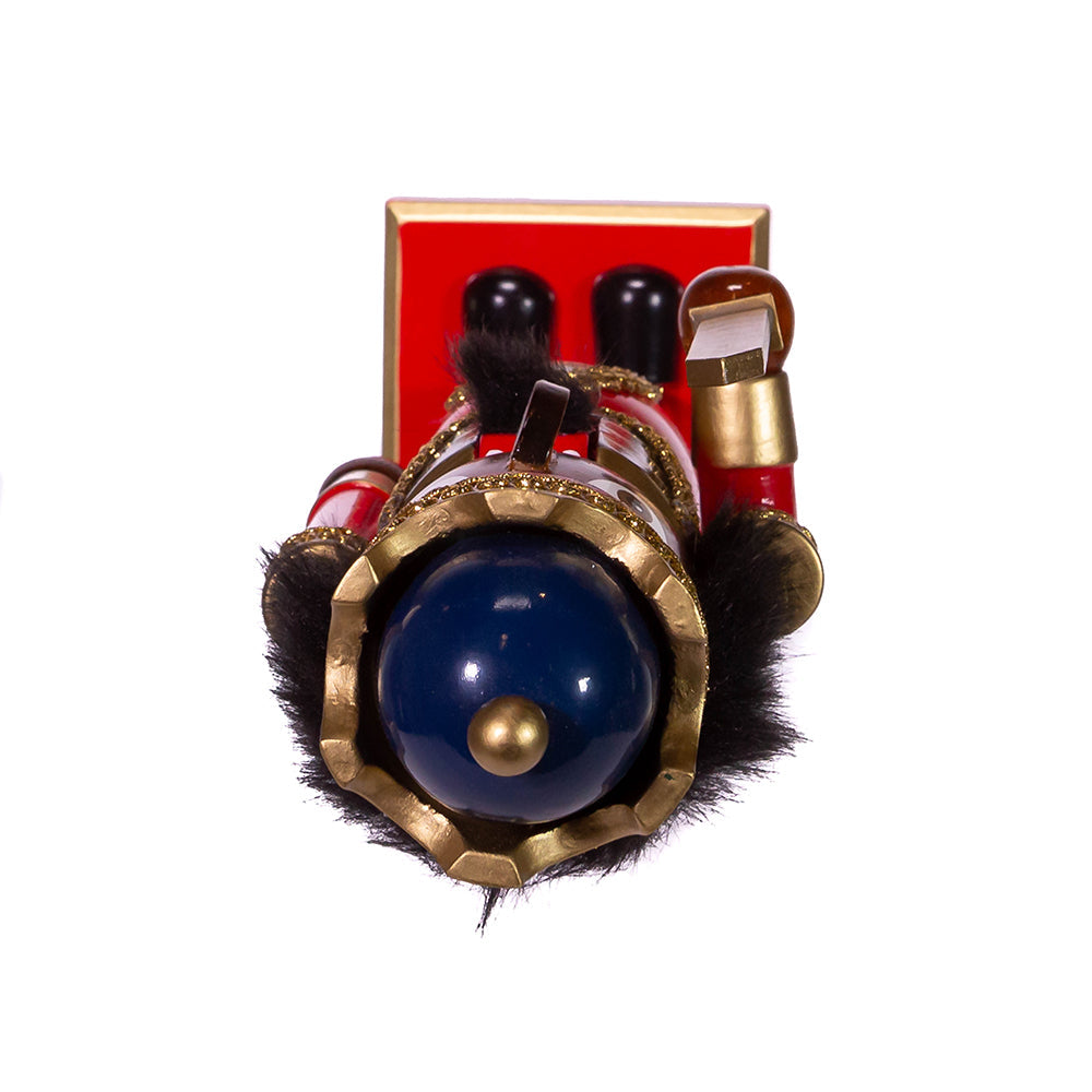 This 14-inch African American King nutcracker is a wonderful addition to any holiday or home décor. Its traditional red, blue and gold design is complemented with black and gold boots and gold sword. He stands on a red and gold base.