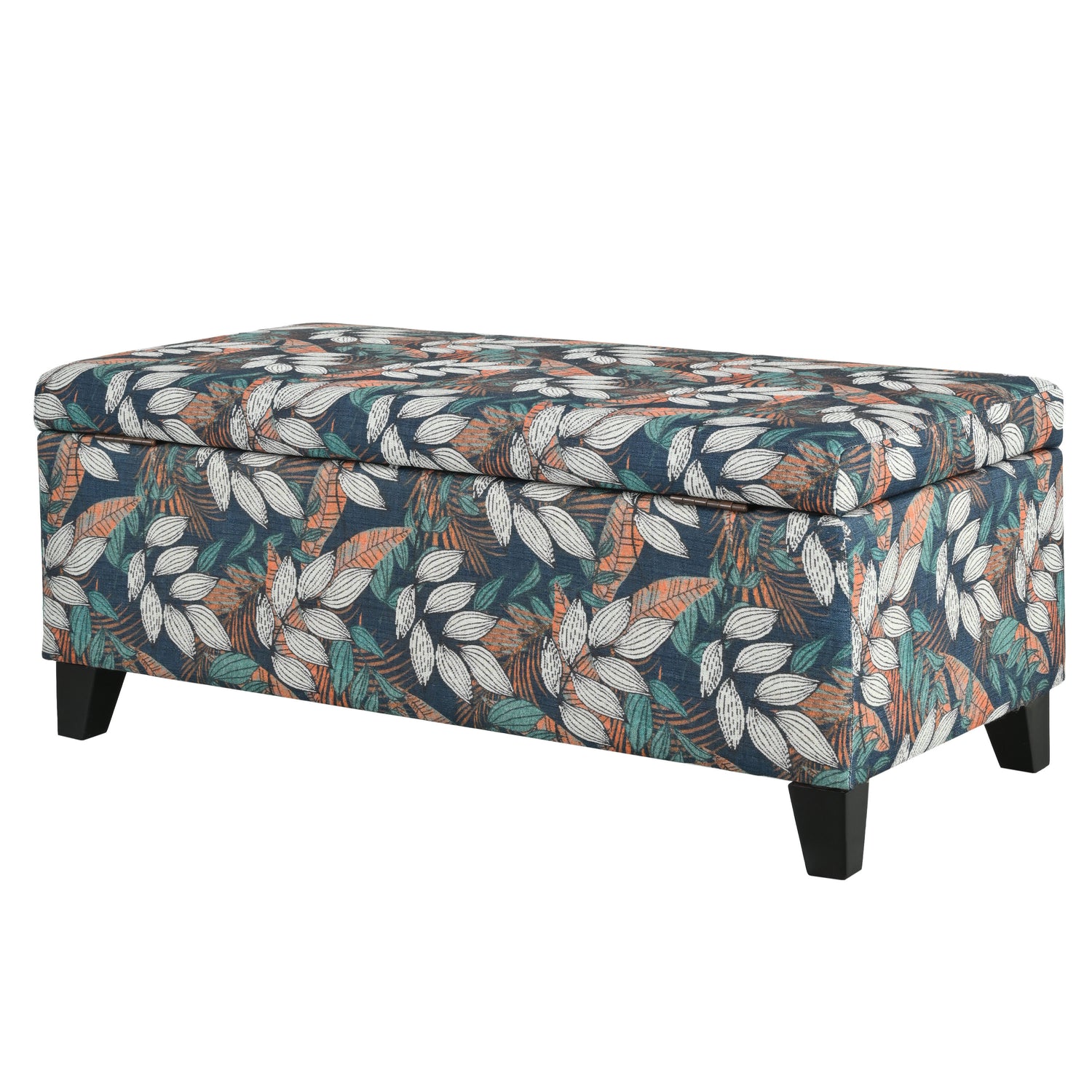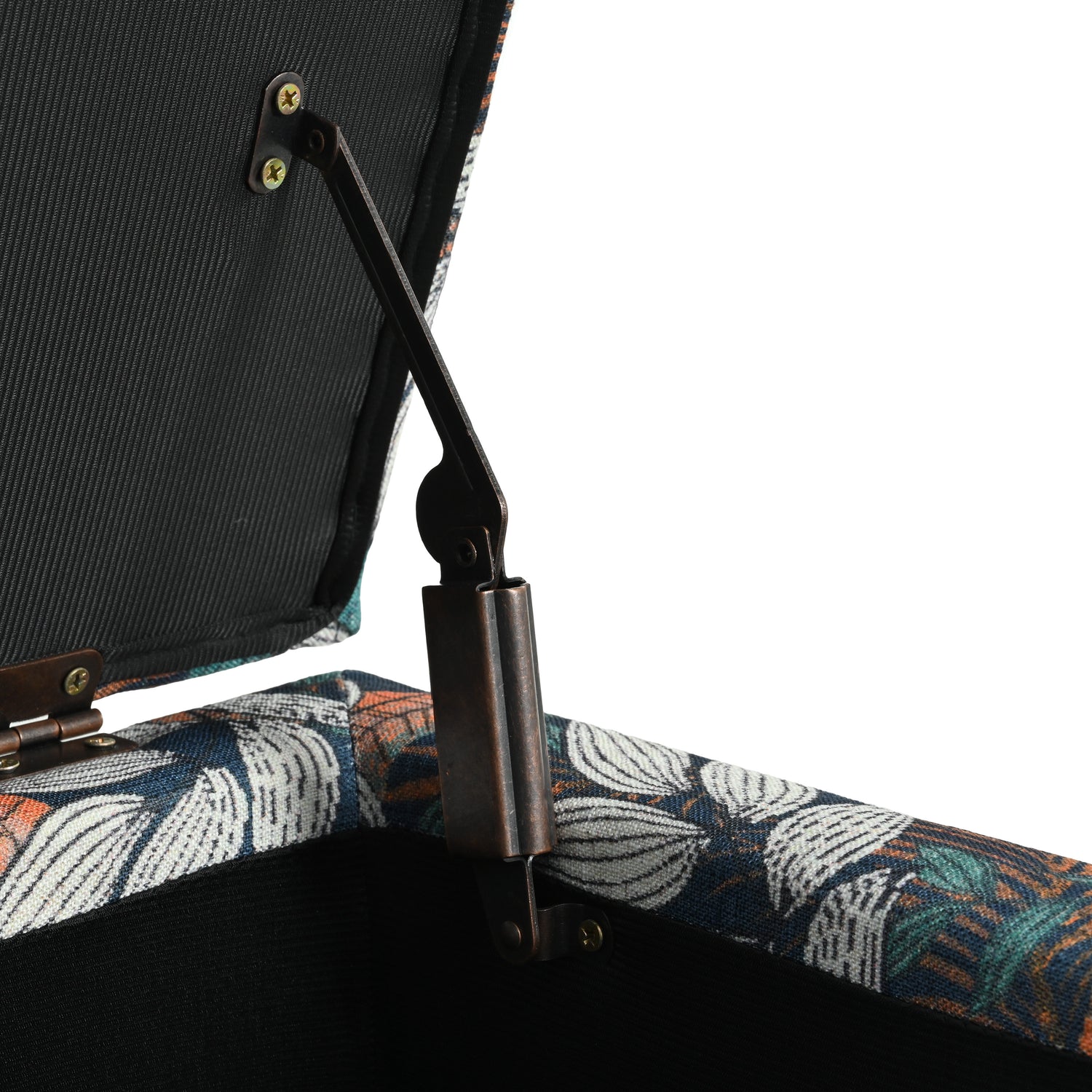 - With a lovely upholstered look and soft pressure hinges, this ottoman not only brings a touch of class to your interior decor but also much-needed storage space.