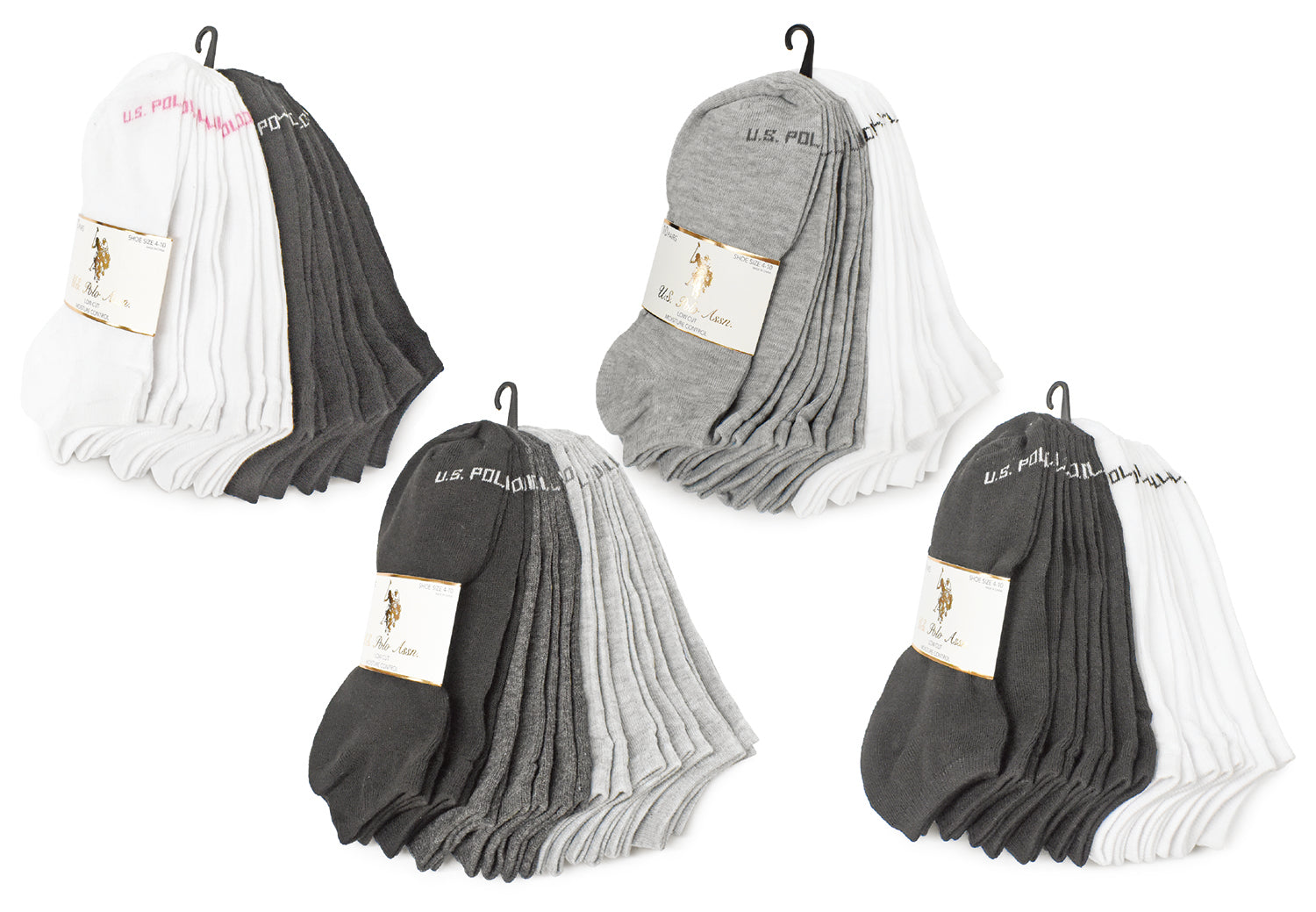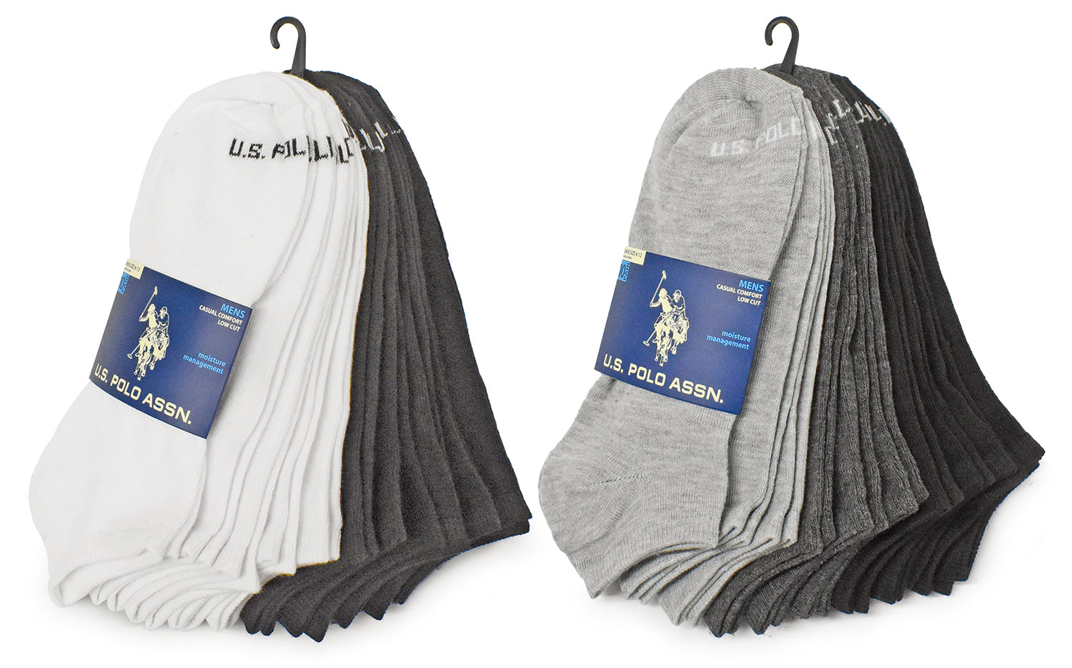 Fill up your sock drawer with this value pack of 20-Pairs U.S. Polo Assn Socks. The casual comfort low cut socks are great for everyday wear and feature moisture managements. Choose between men's and women's styles and between solids or patterned colors.