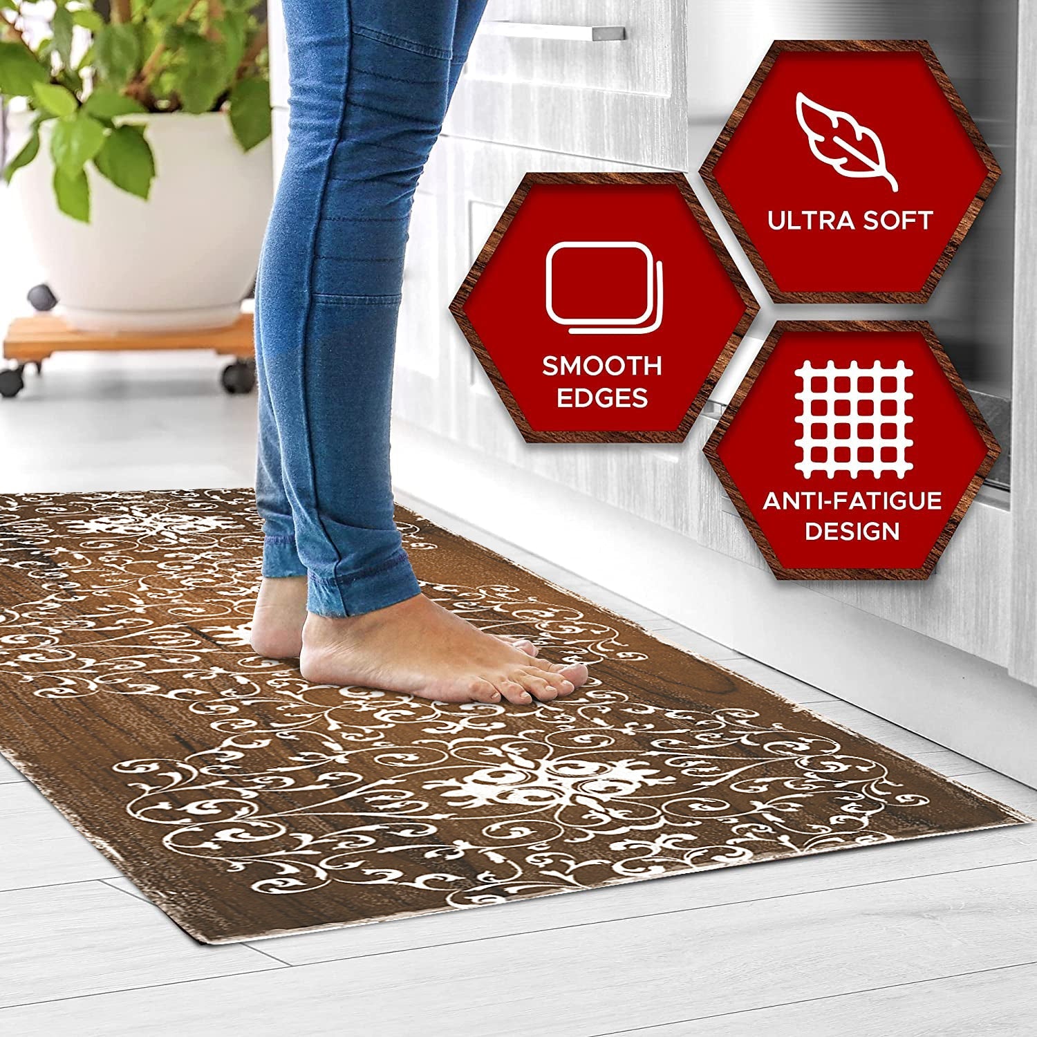 - THE BEST RUG FOR YOUR TIRED FEET AND BACK: If you spend long hours standing on your feet while cooking, working at your stand-up desk or simply doing your daily house chores, then this anti-fatigue comfort mat makes a must-have addition to your home. Thanks to its cushioned, thick padded design, it helps relieve tension from your feet, legs and low back, while providing extra support and cushioning for your achy feet.