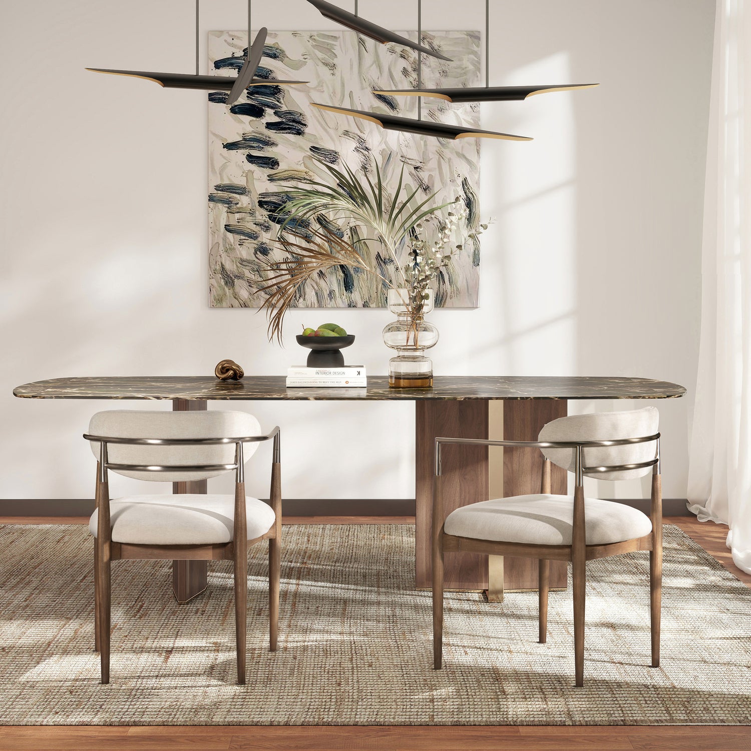 - Modern contemporary silhouette pairs effortlessly with a variety of dining table styles
