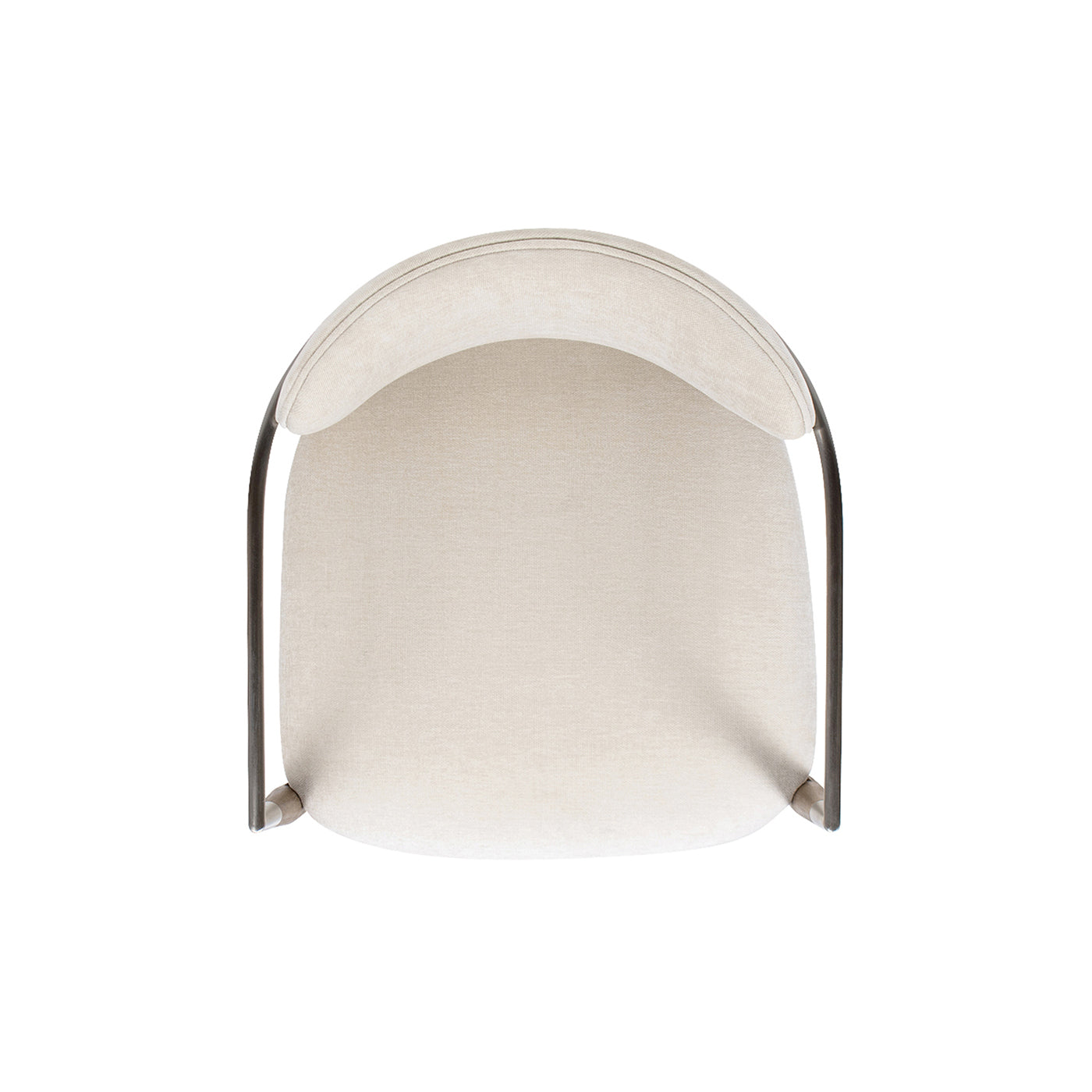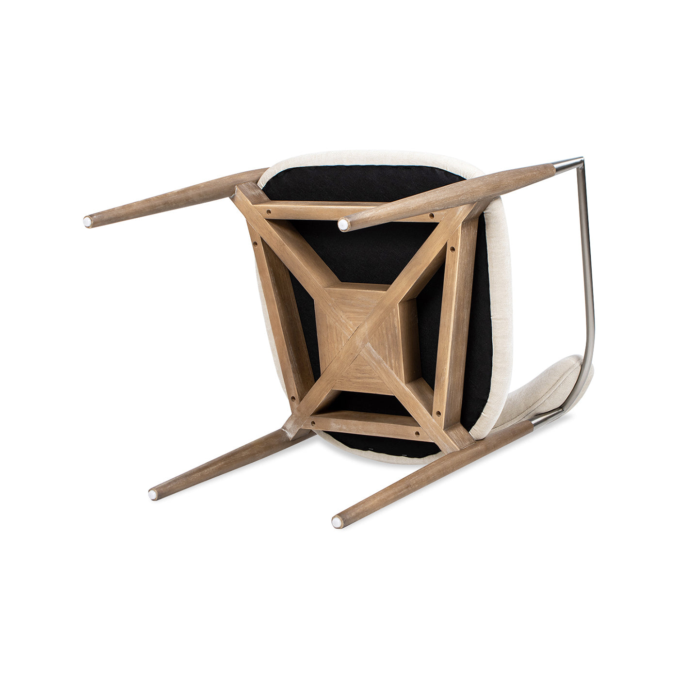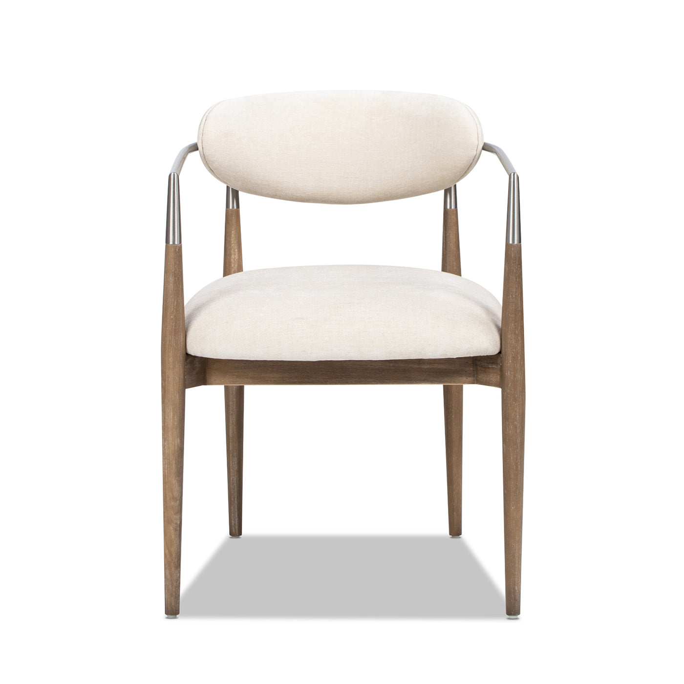 - Sleek brushed nickel arms enhance the chair’s sophisticated design