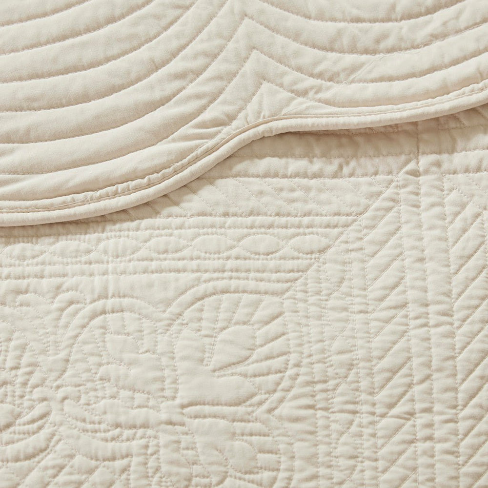 This 3-piece quilt set offers a blend of classic charm and contemporary comfort, perfect for enhancing the bedroom with a cozy, elegant touch. Its reversible design and scalloped edges provide versatile styling that suits any season or mood.