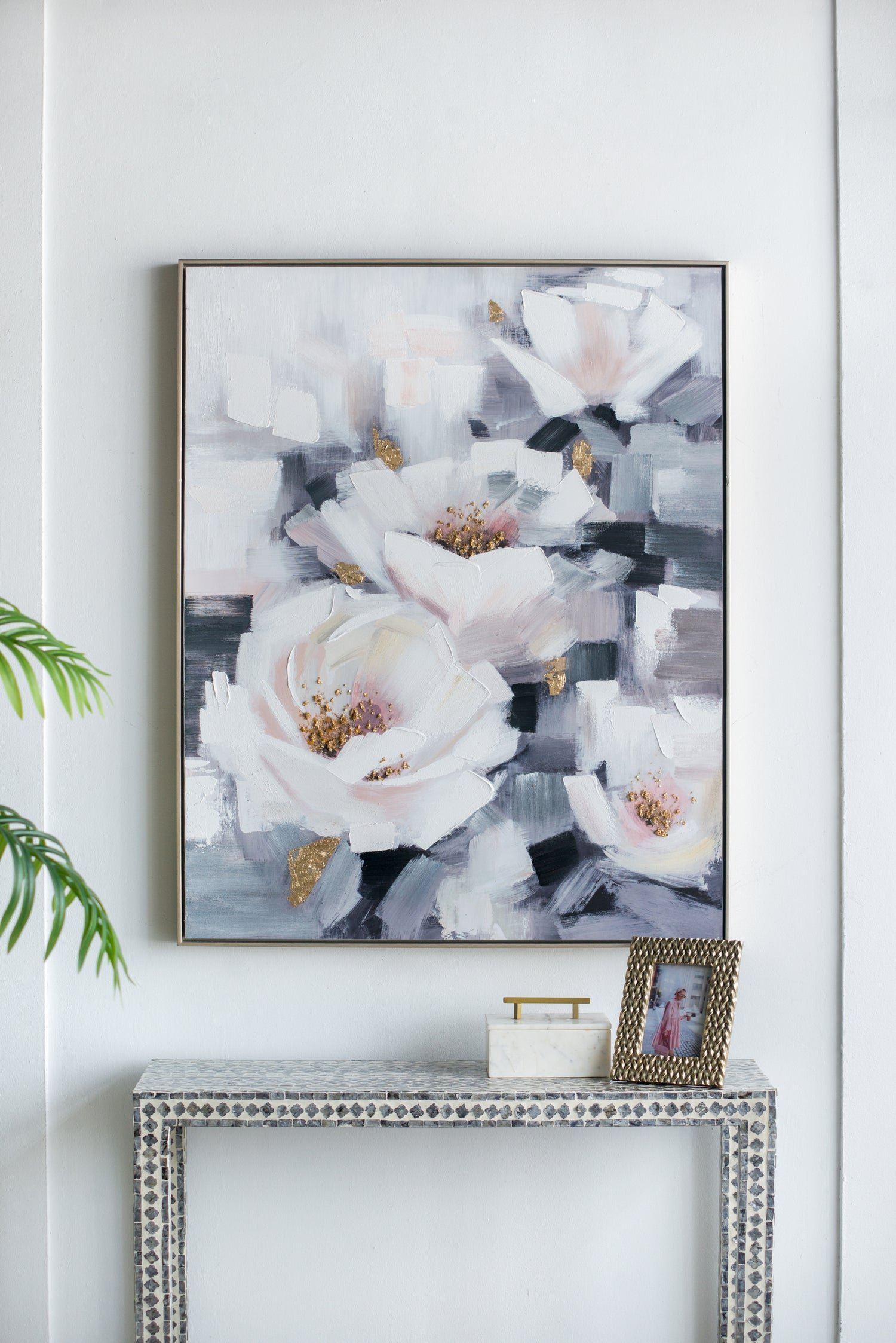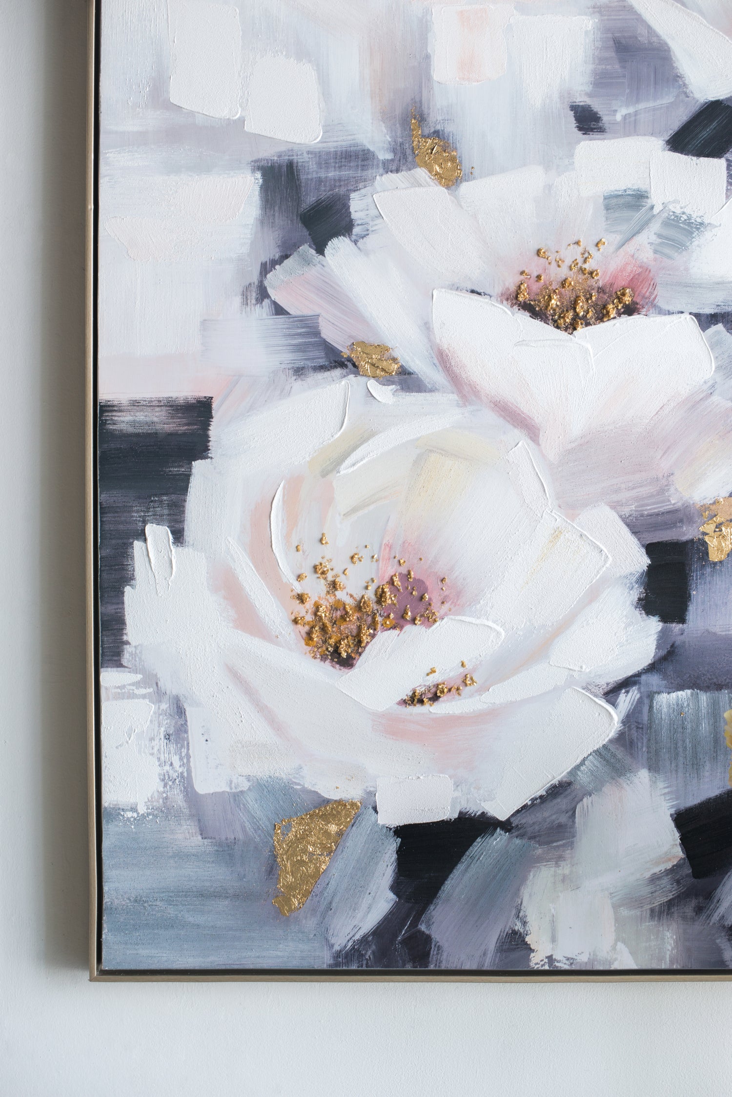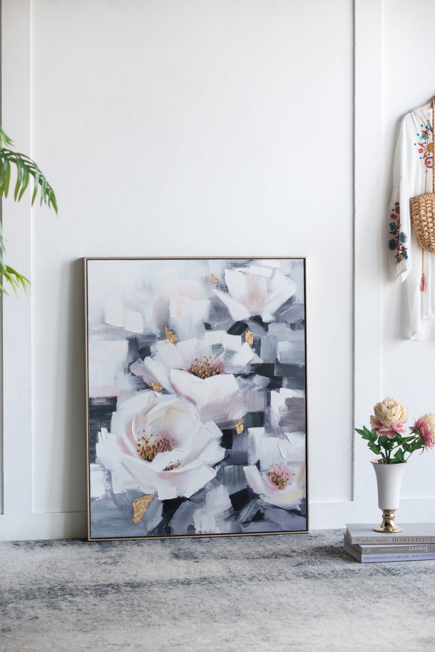 - This hand painted oil on canvas is sufficiently subtle to create a sense of floral femininity and tranquility where you most need it.