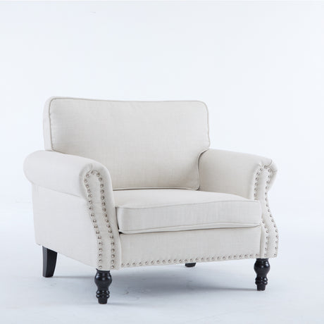 • 40.16 in Faux Leather Rolled Arm Sofa with Nailhead Trim, Beige