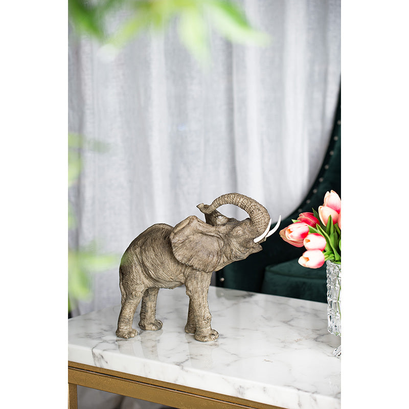 - When an elephant’s trunk is raised, it is symbolic of good fortune, which makes the Tai Elephant Accent, Trumpeting, a popular home and office accent.
