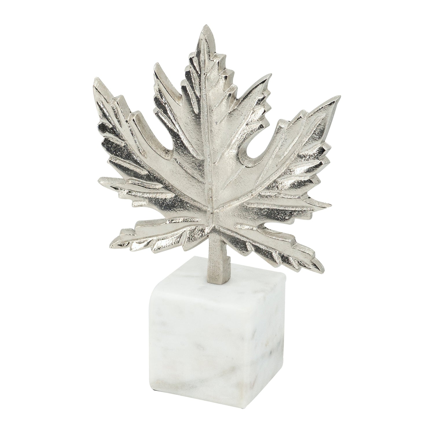 - This elegant silver leaf sculpture comes on a marble base.