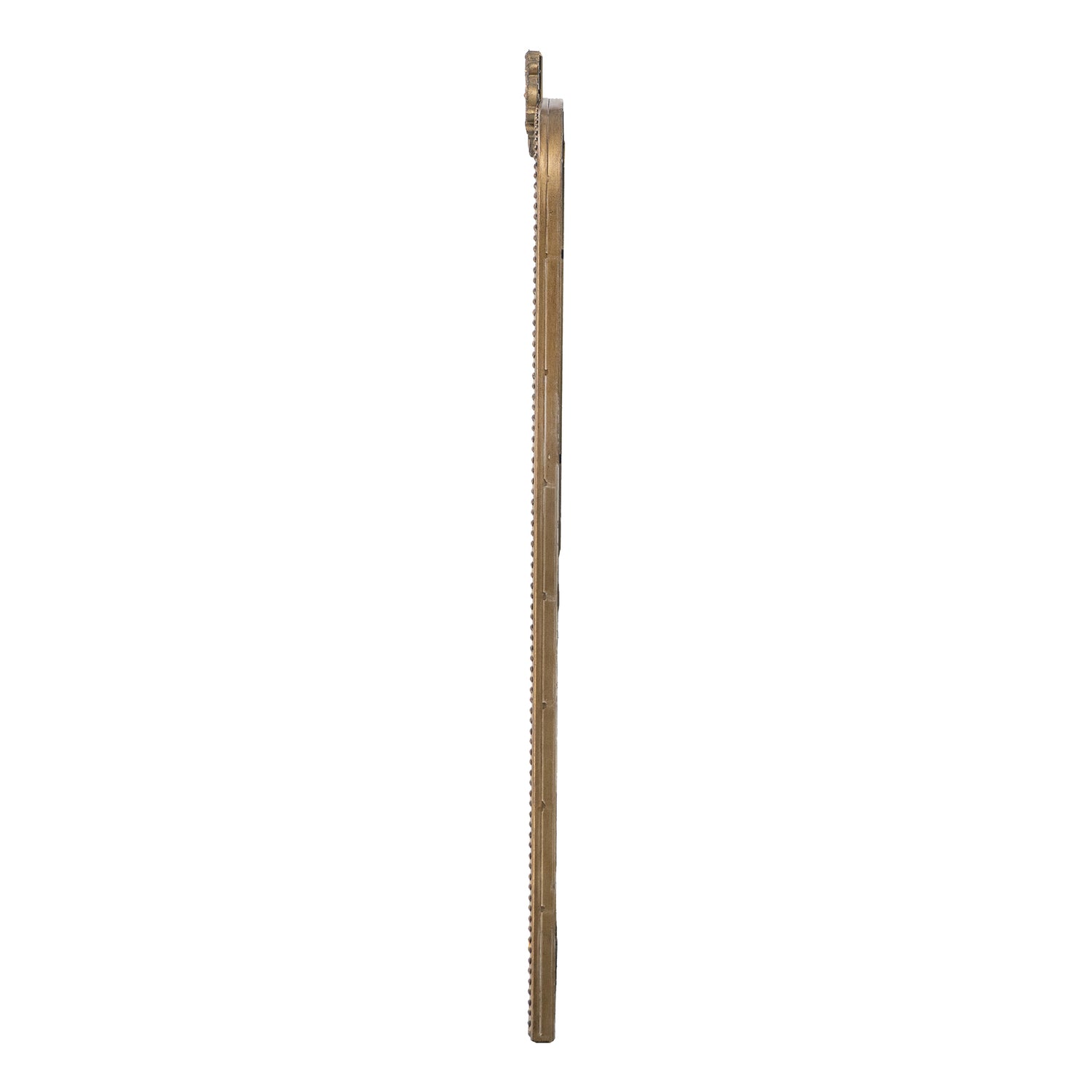 This gold mirror features baroque inspired detailing and a crisp reflection. Style this on a mantle or dresser for a luxurious look.