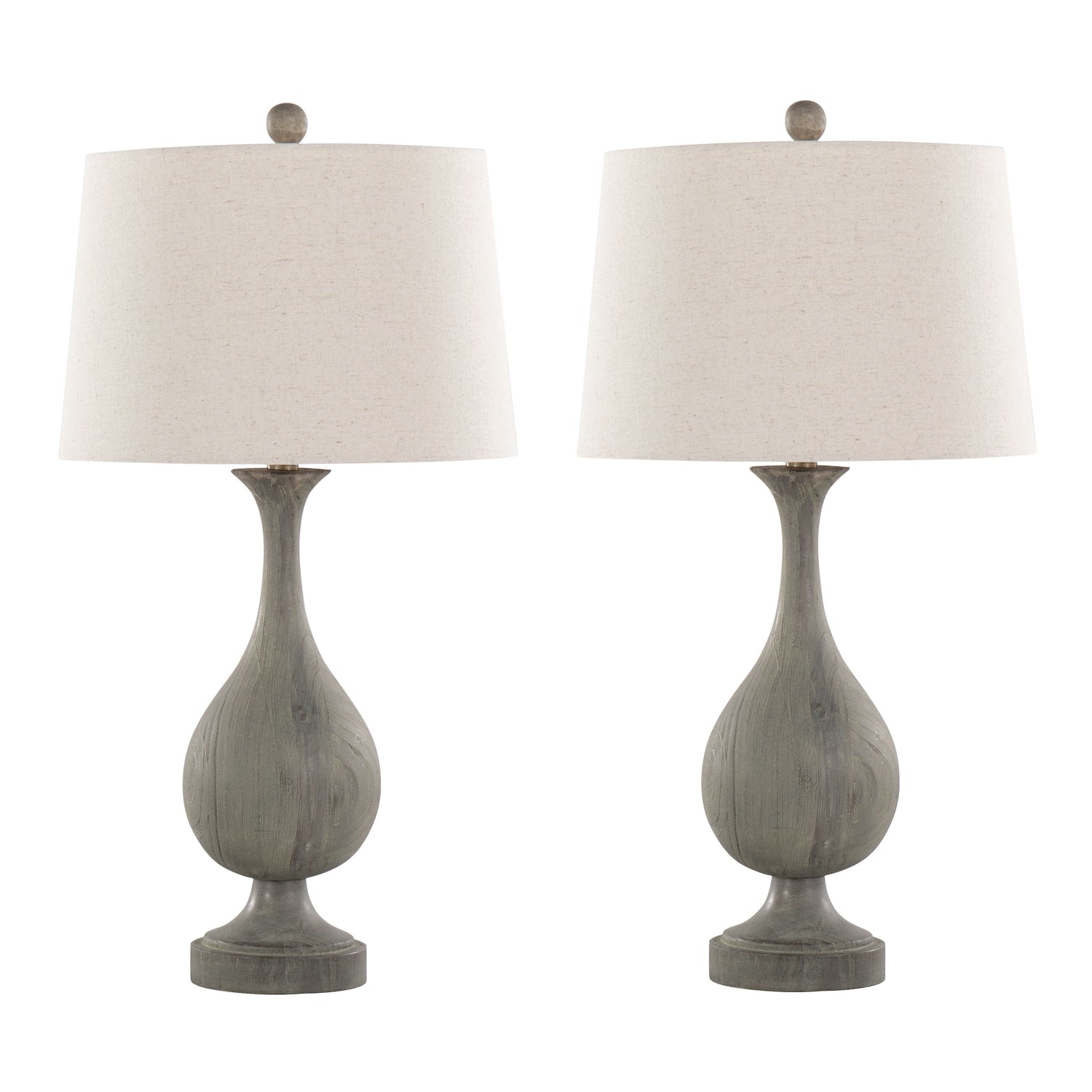 - Add a rustic design element to your space with the Cipolla Table Lamp from Grandview Gallery by LumiSource. This polyresin lamp features a tapered linen drum shade and faux wood design and showcases a teardrop body with an hourglass stem. Whether resting on your nightstands, set on side tables in the den, or tucked into your favorite reading nook, this set of lamps adds a touch of warmth to any space.