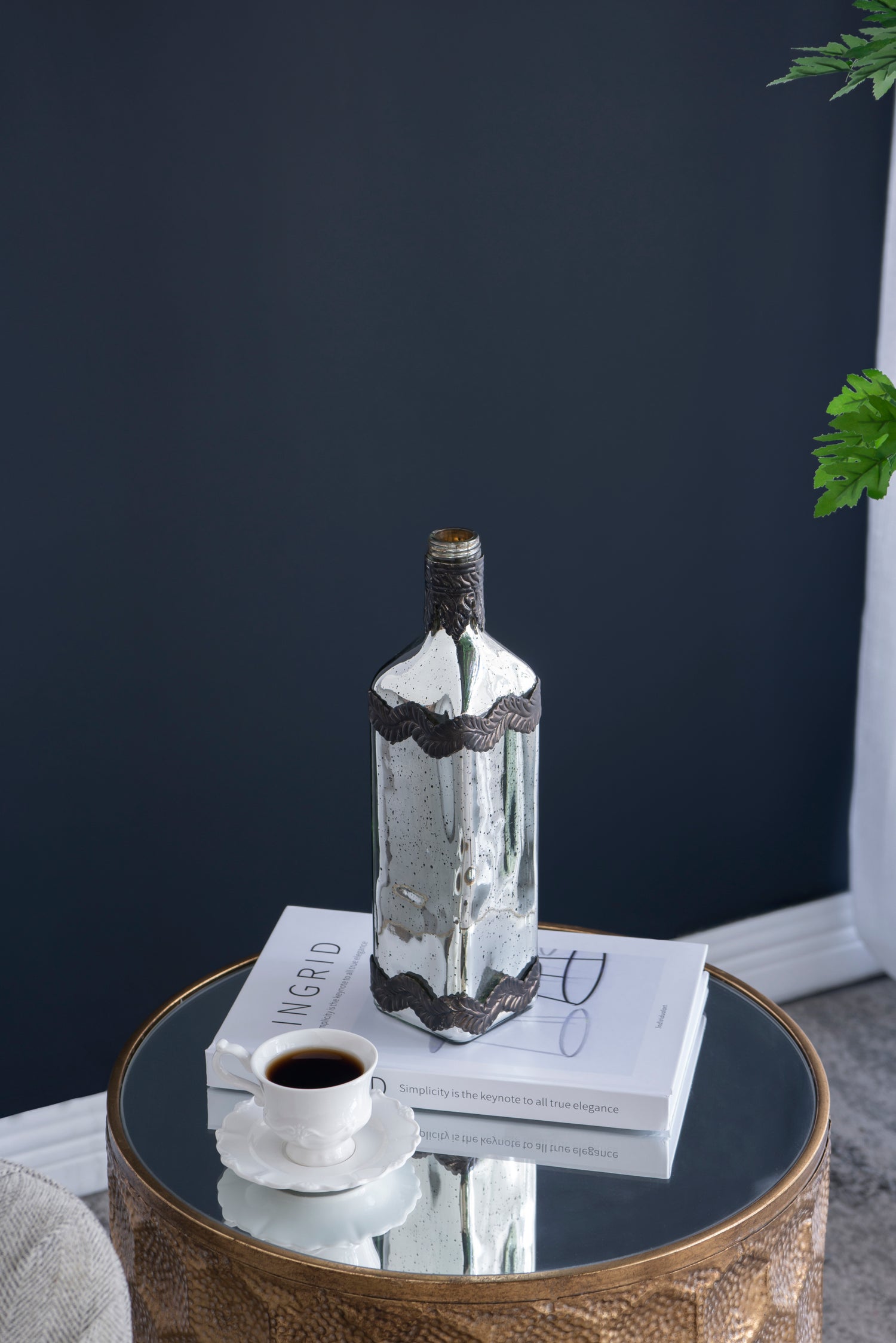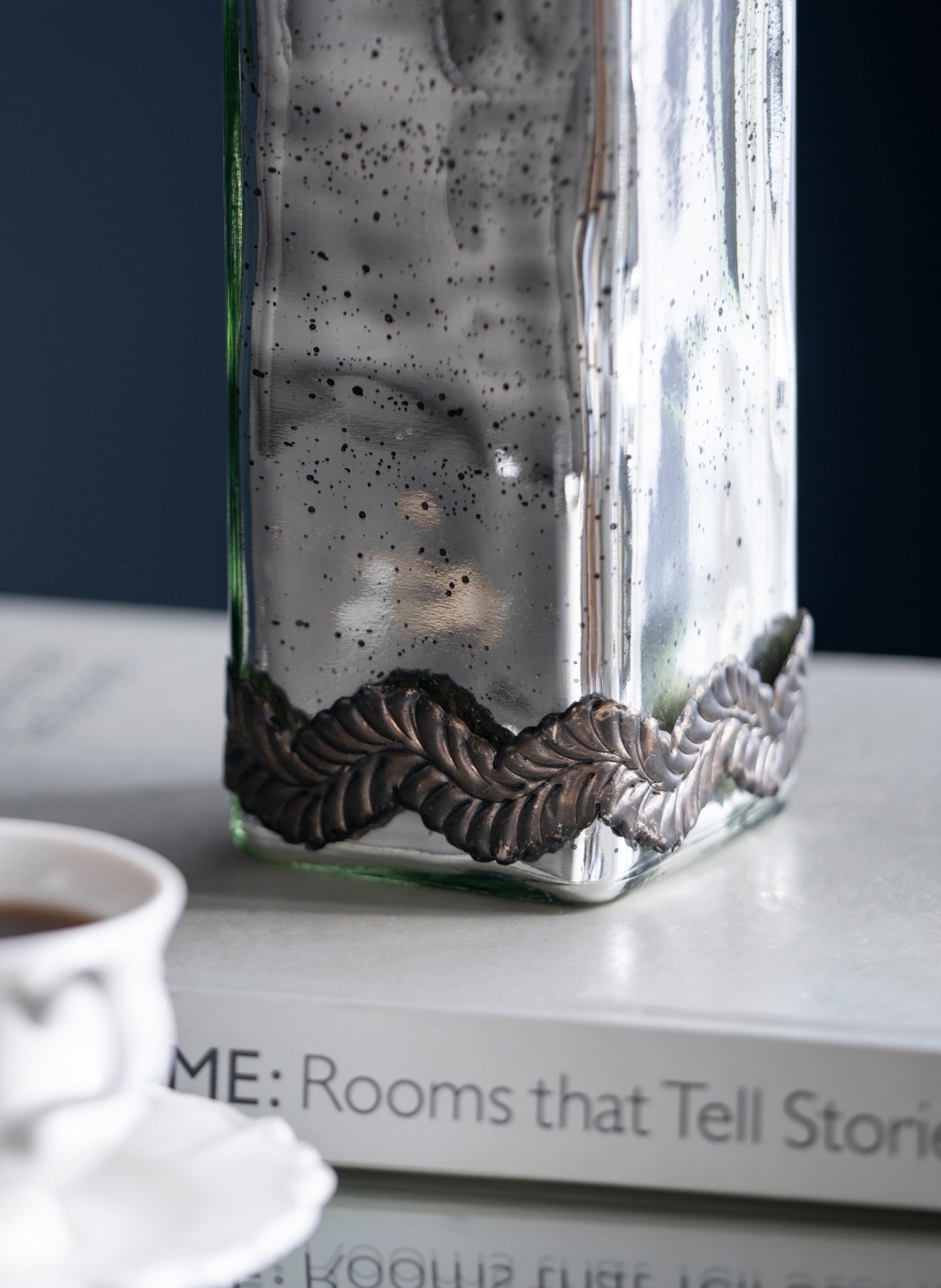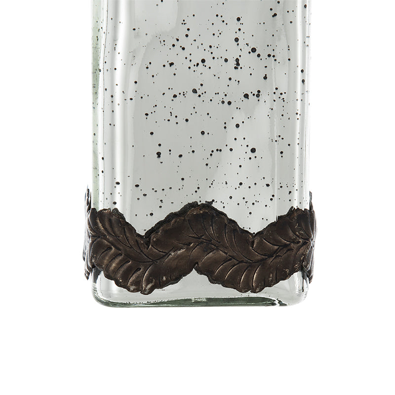 - Boasting a classic bottle silhouette, a speckled antique silver finish and adorning leaf patterns, this vase offers a unique edge to your home decor.