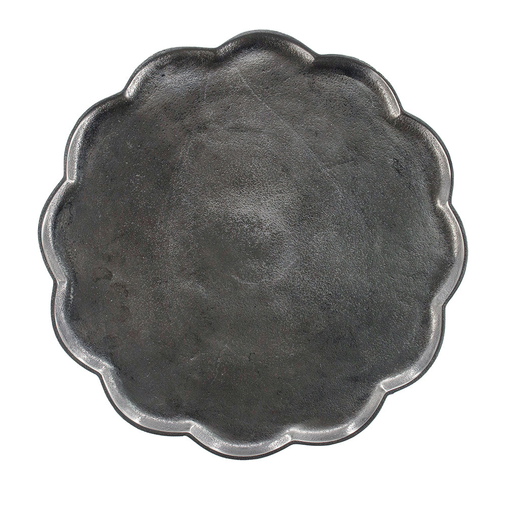 - Beautifully made with aluminum with a silver antique finish, this accent table has a round top.