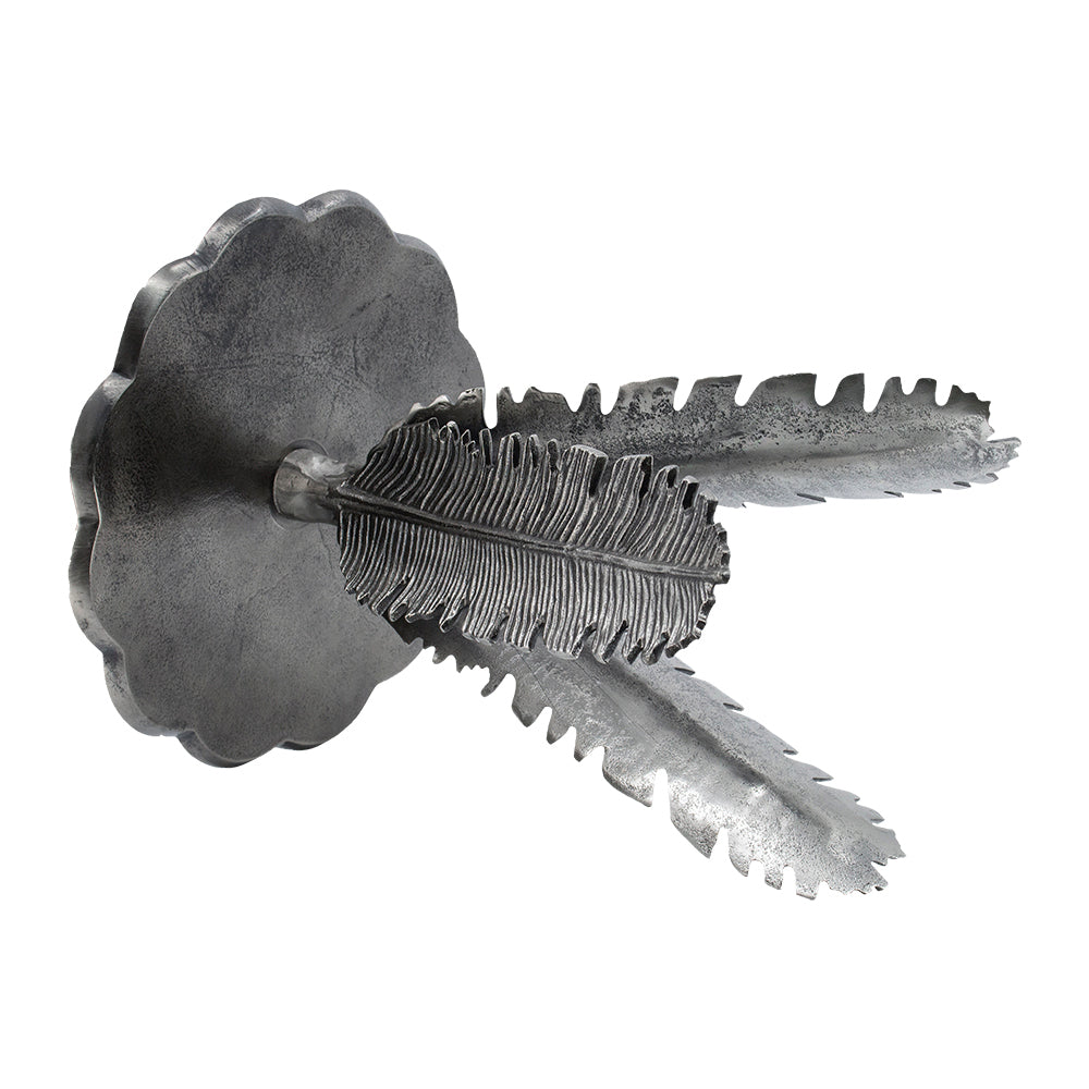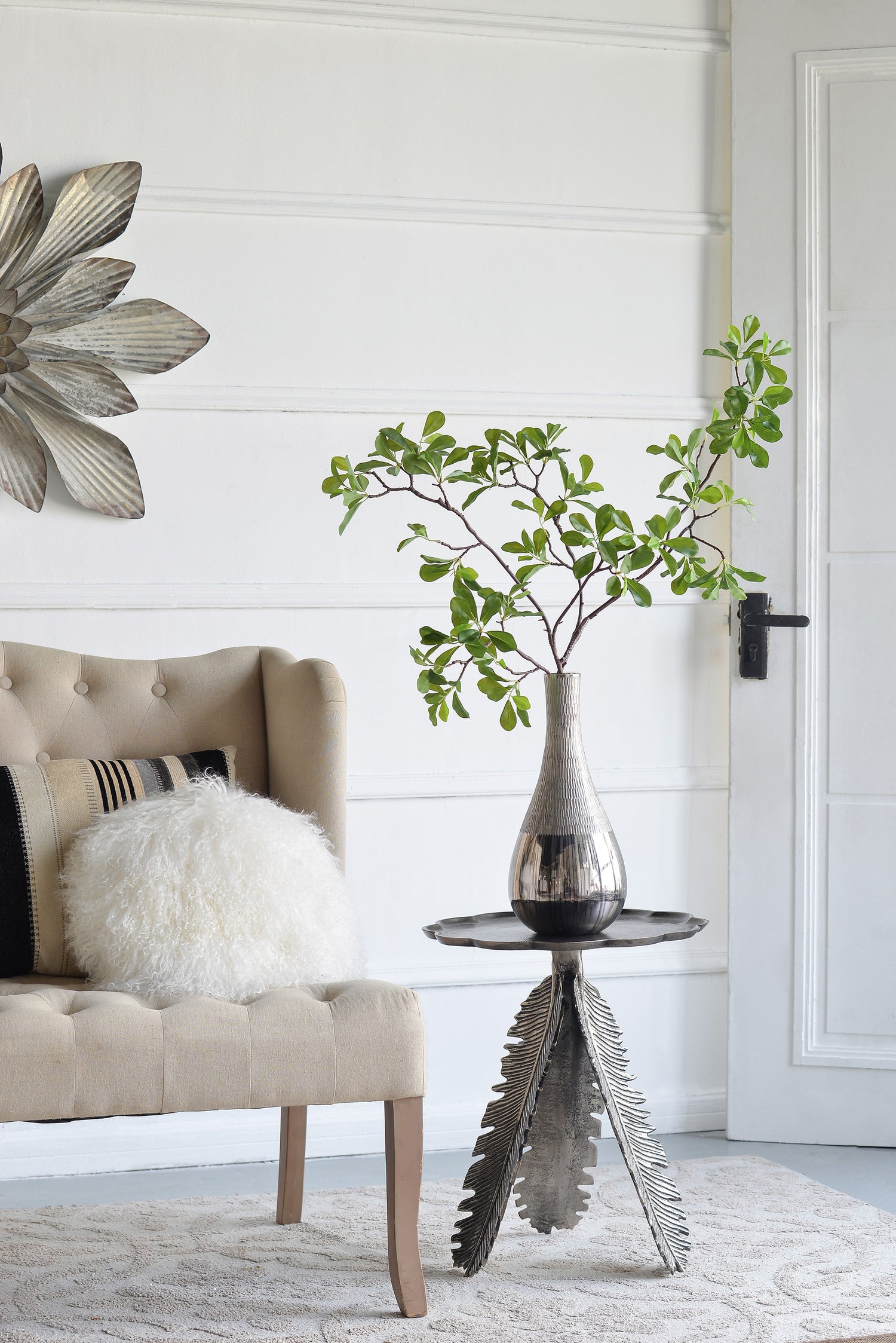 Leaf designs along the legs of this side table define its Natural-inspired aesthetic. Beautifully made with aluminum with a silver antique finish, this accent table has a round top. It looks right at home next to transitional furnishings and decor in the living room.