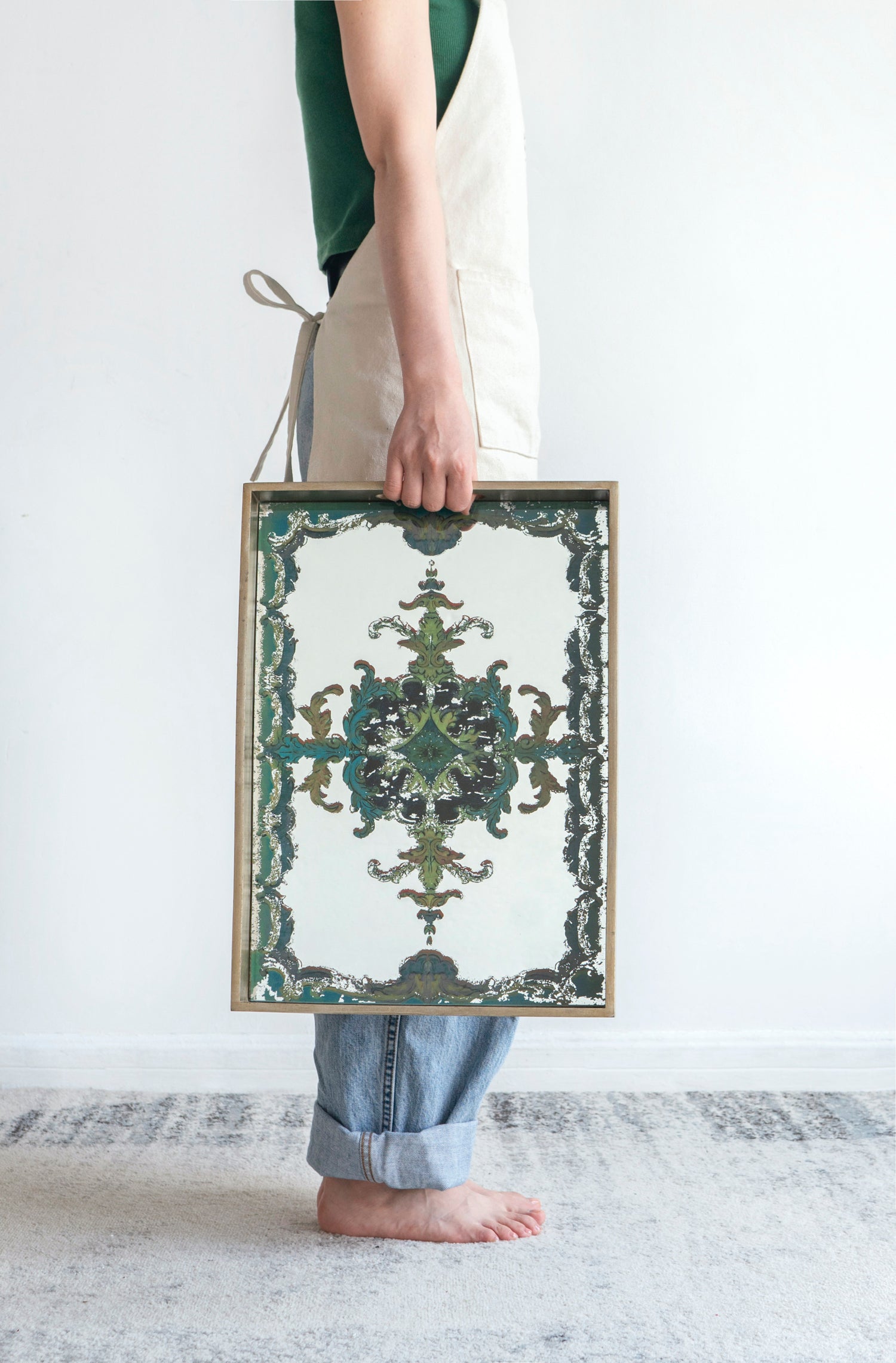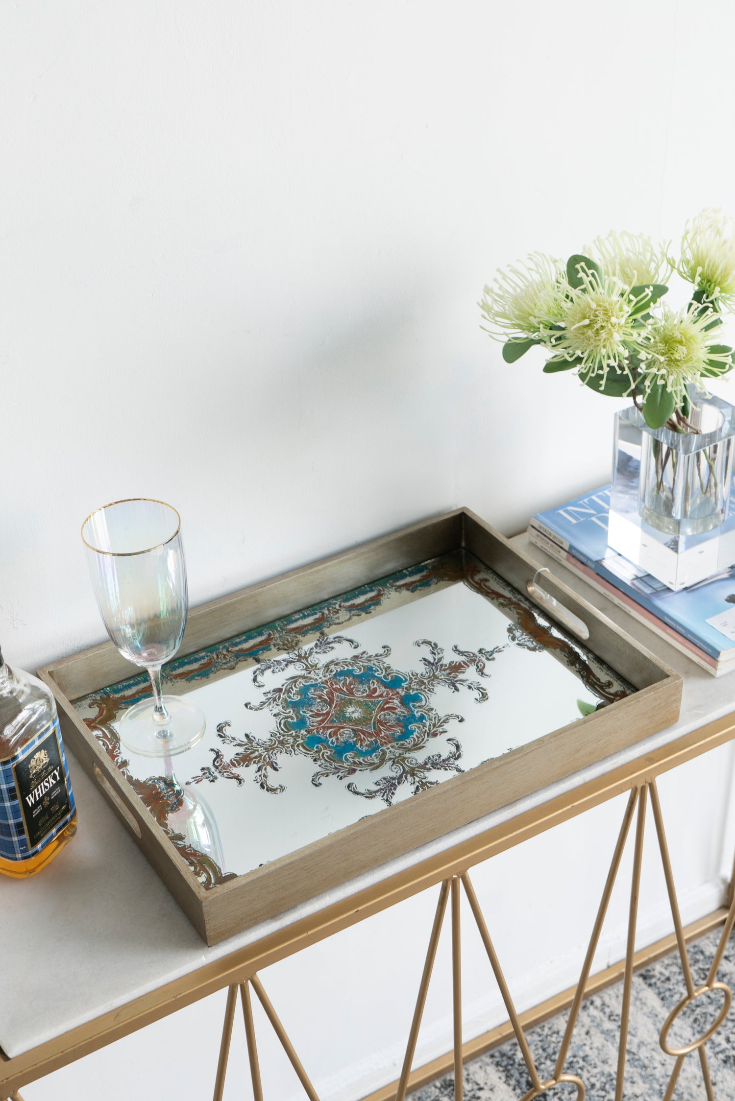 - The bold, layered colors and Baroque influences allow this tray to complement bohemian, contemporary, transitional, and traditional styles, ensuring it can slot into any living room, entryway, or kitchen.