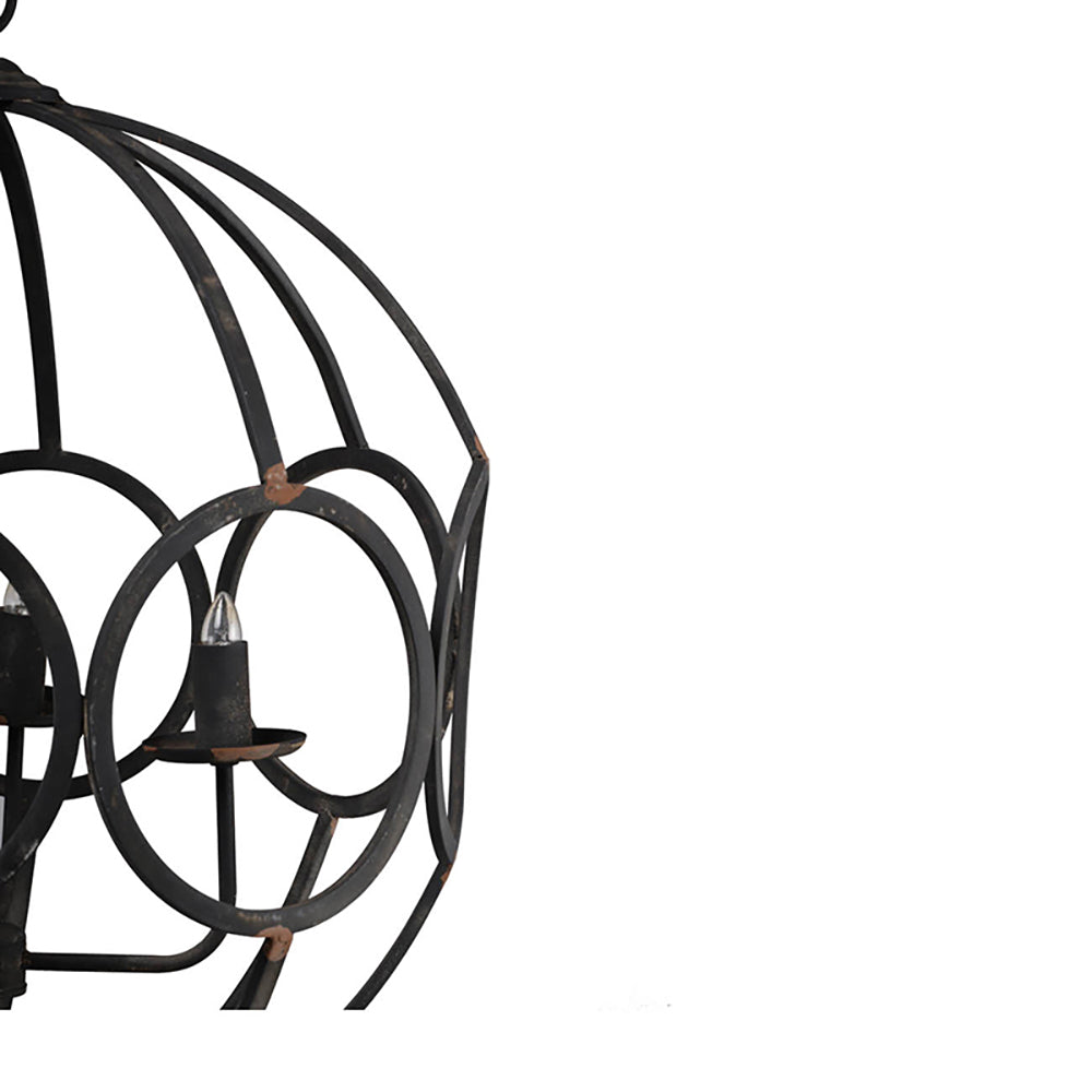 Make a strong decorative statement through sophisticated lighting with the ornate Malin Four-Light Orb Chandelier. This piece is carefully constructed from durable metal and finished in versatile matte black for natural coordination with a variety of interior styles. Use as accent lighting above a table, seating arrangement, or anywhere that could benefit from a bold central focal point.