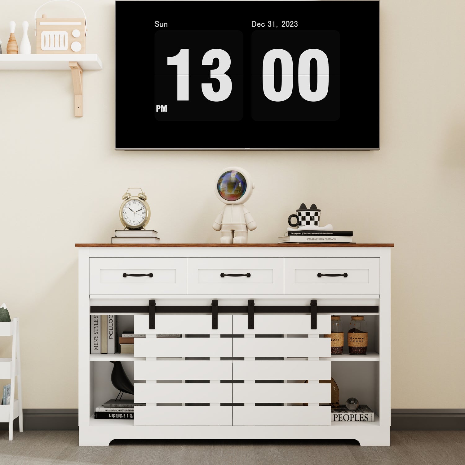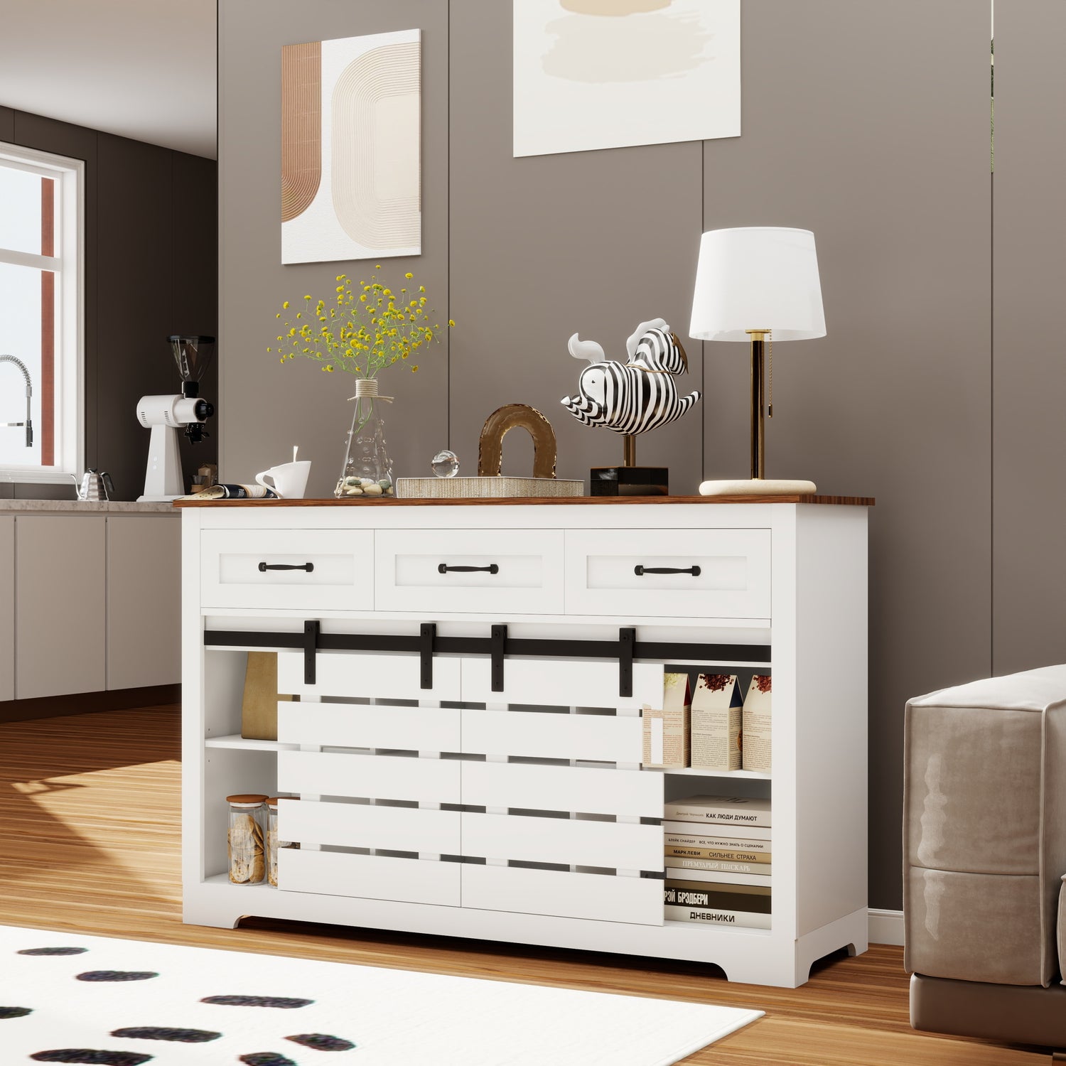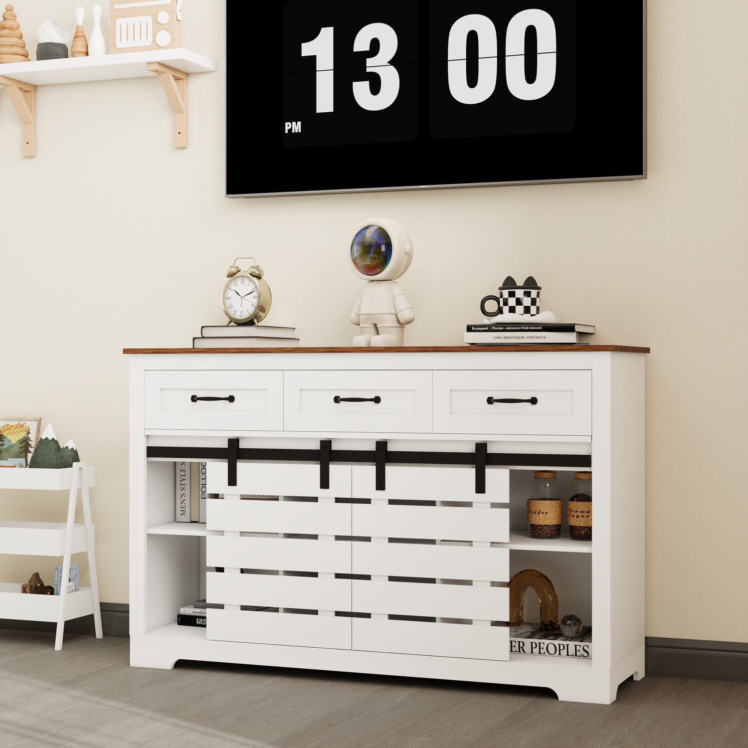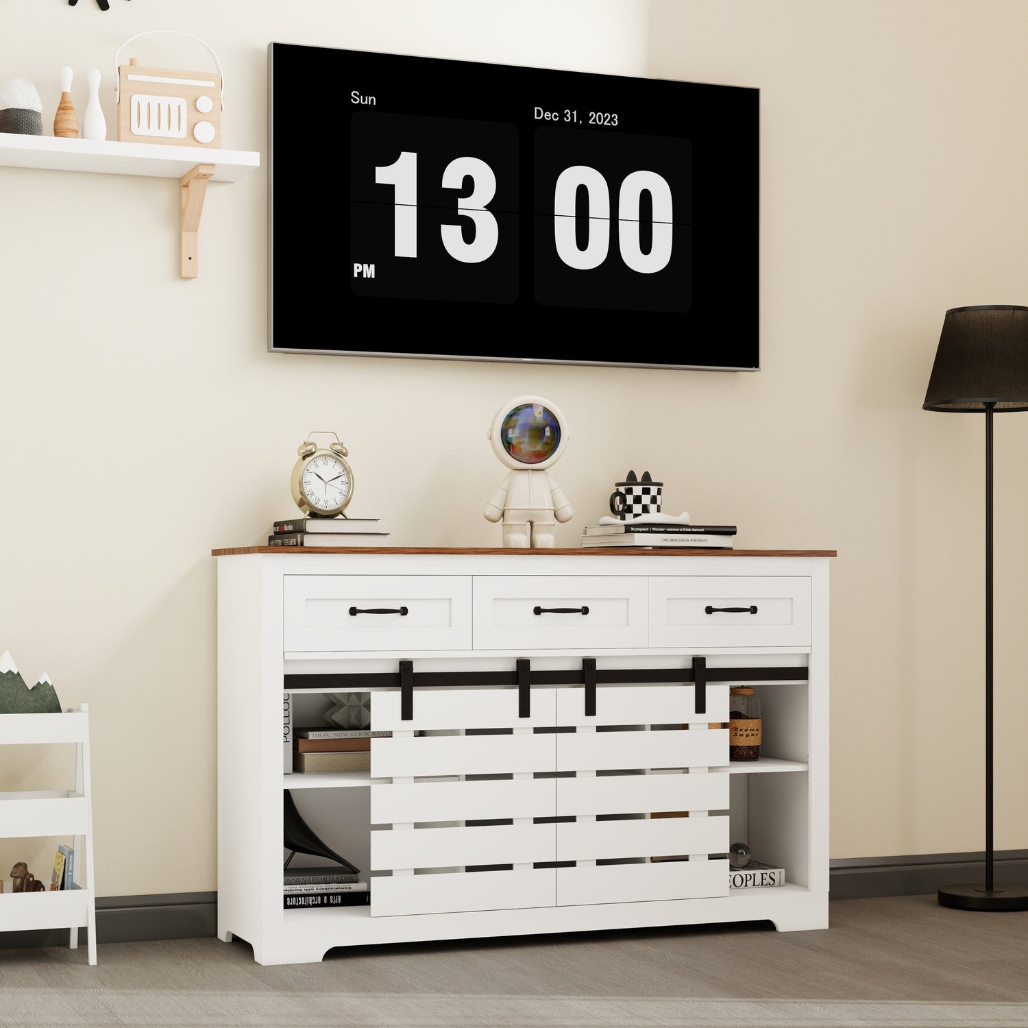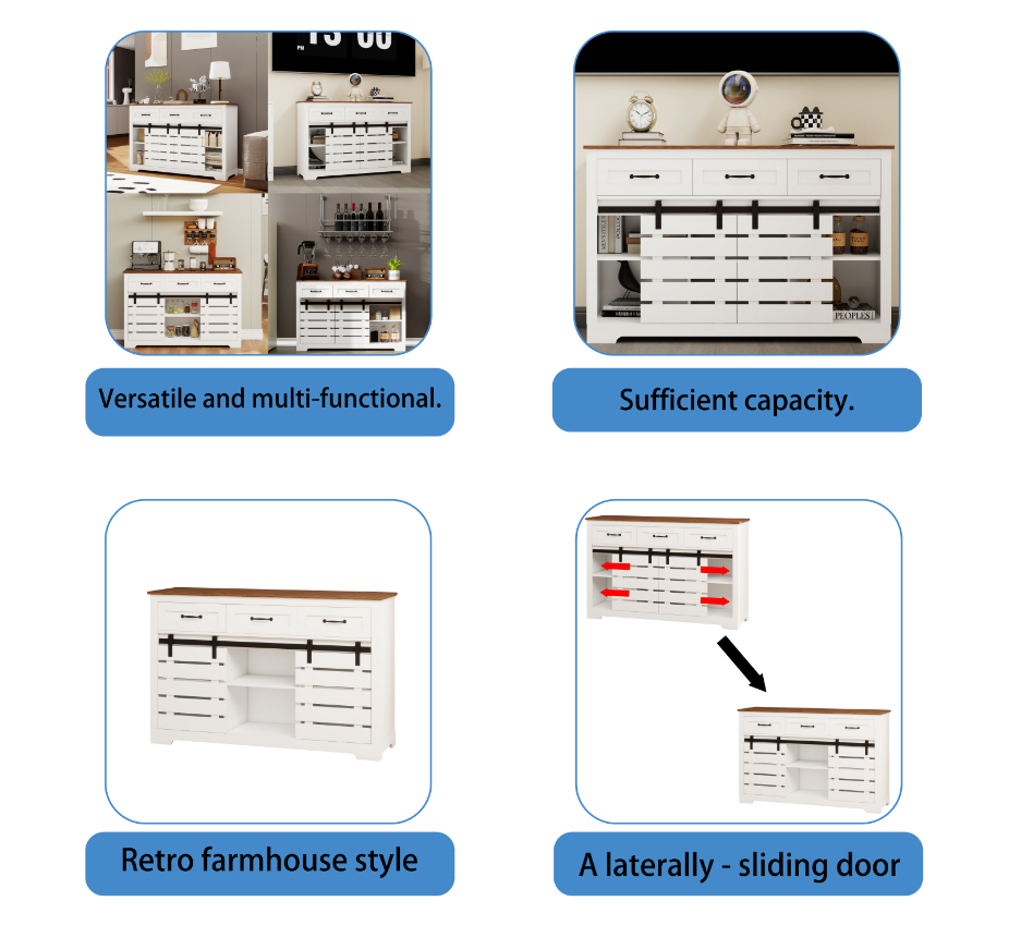- Vintage farmhouse style: designed in a farmhouse barn door style with sliding opening and closing doors for added space savings, this sideboard is perfect for those looking for rustic charm and character. Its classic farmhouse design will complement any interior!
