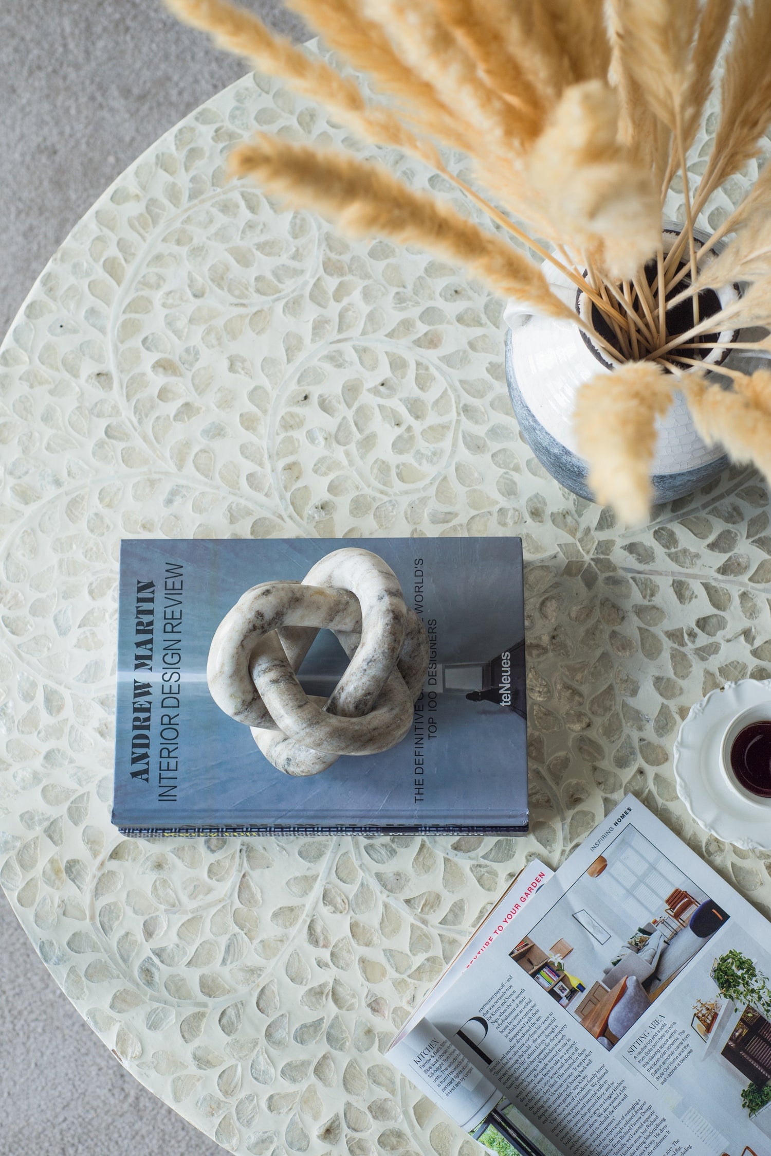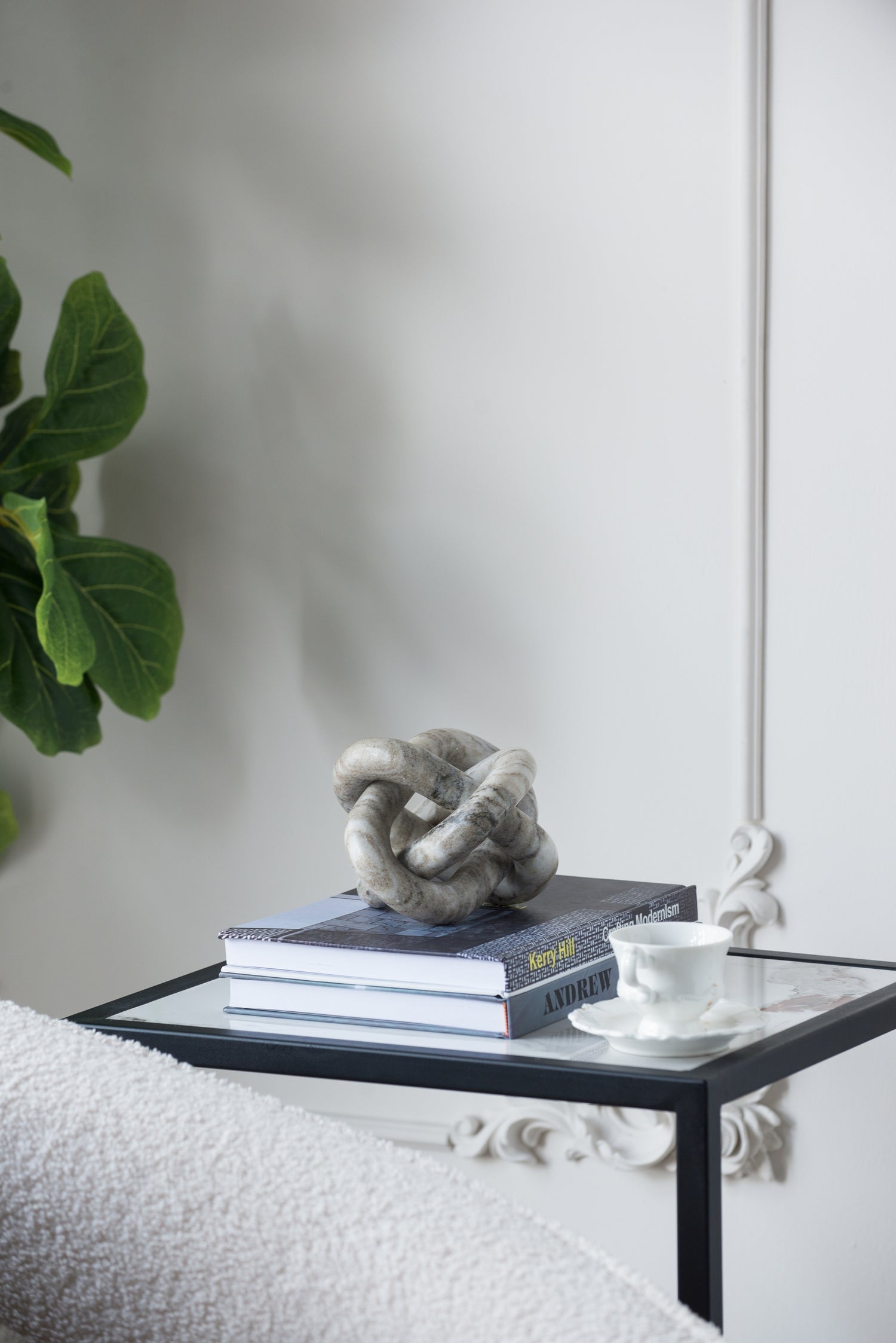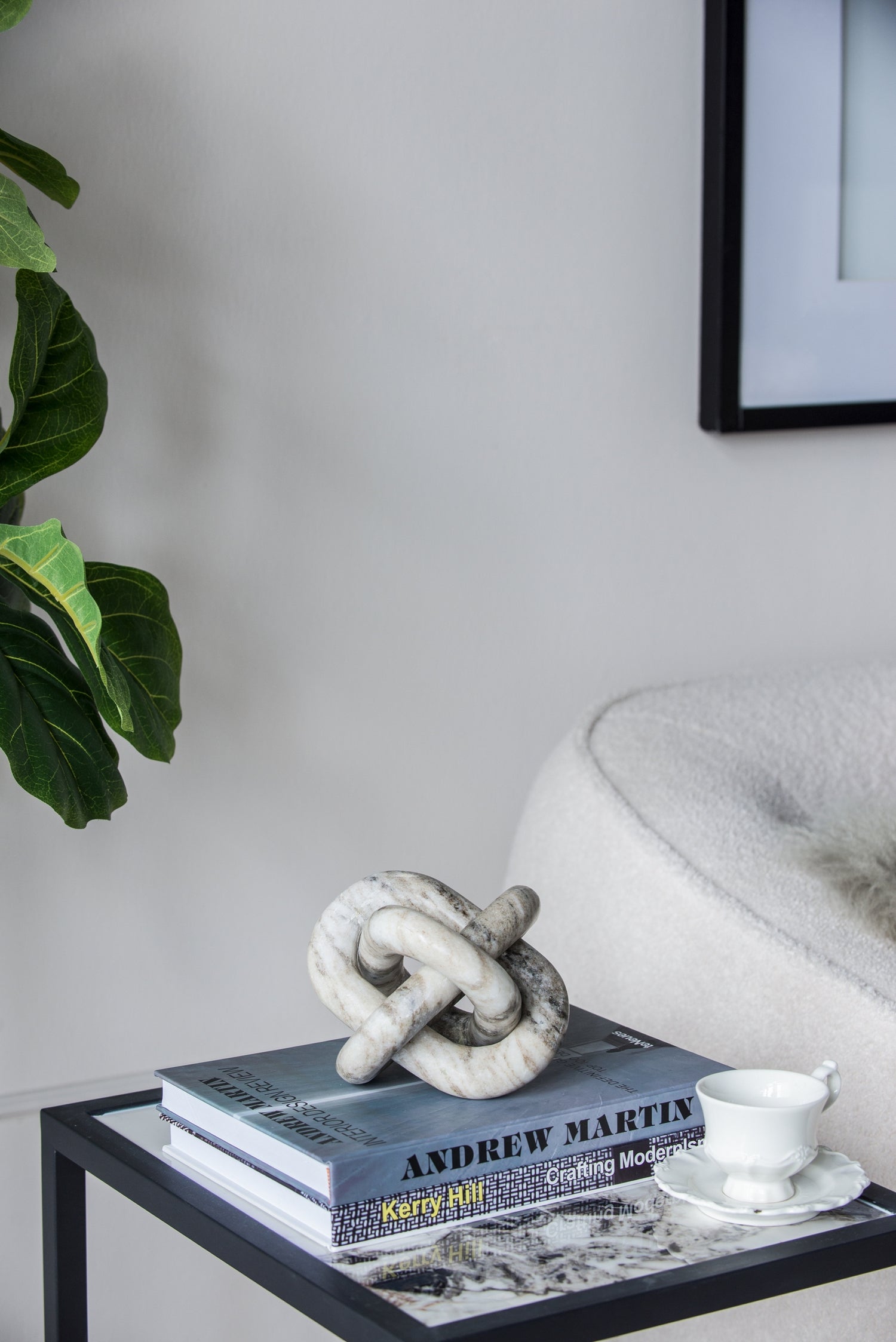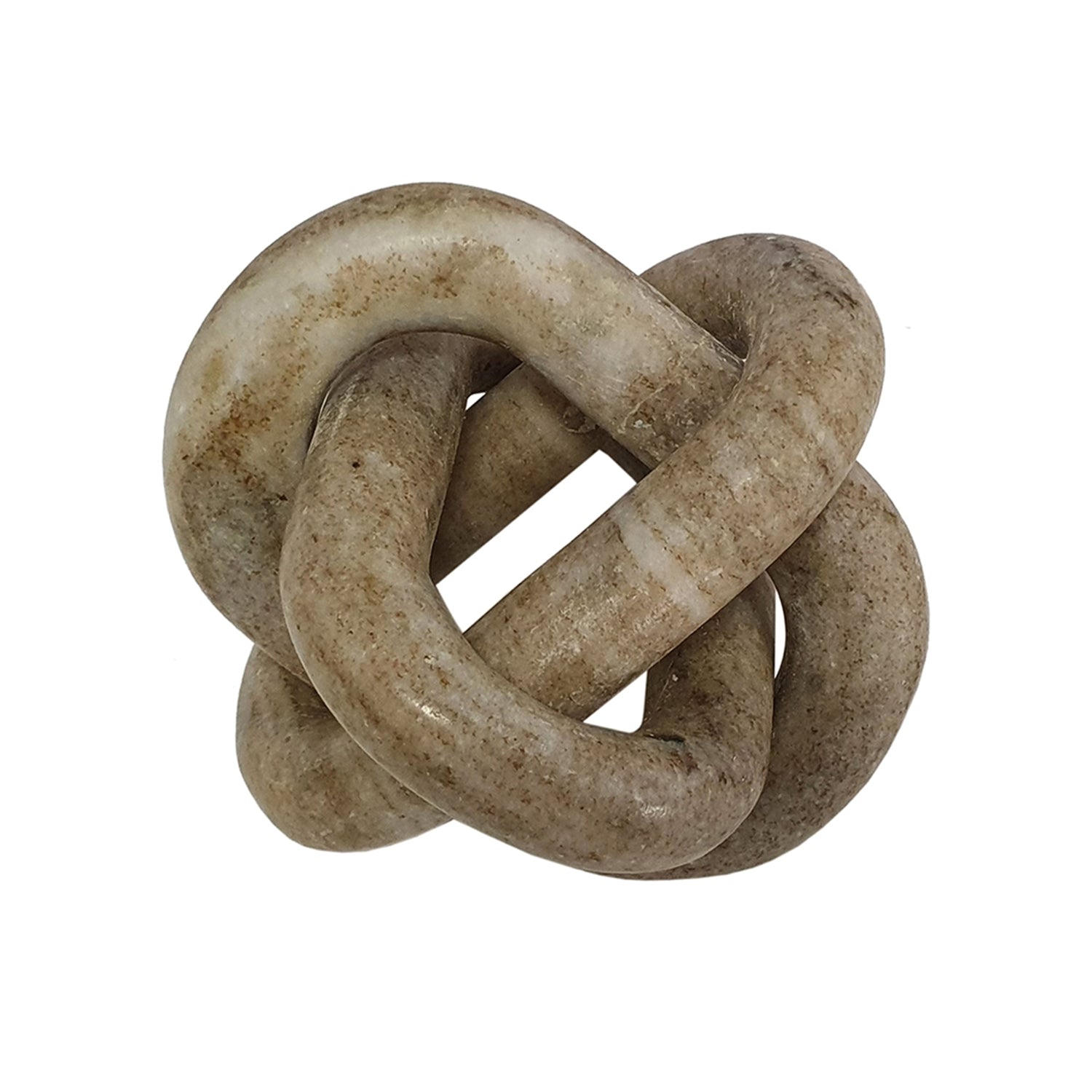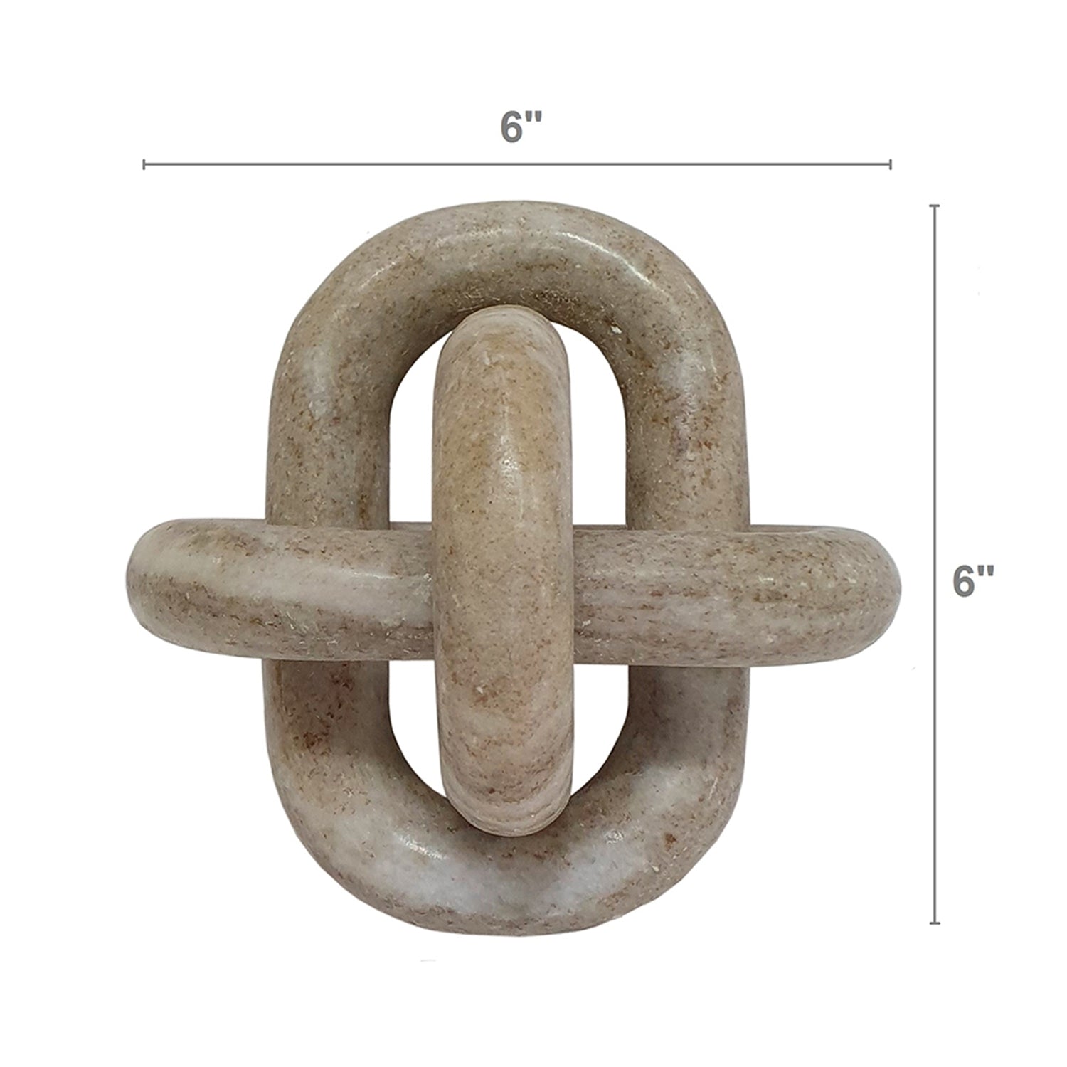 This abstract marble sculpture features an interconnecting design and a natural cream finish. Measuring at a cozy 6 x 6 x 6, this piece can easily slot onto your coffee table, mantel, fireplace or shelving unit. The minimalist design and neutral color allow the sculpture to complement a wide variety of interior styles, making for an accent which is durable and versatile.