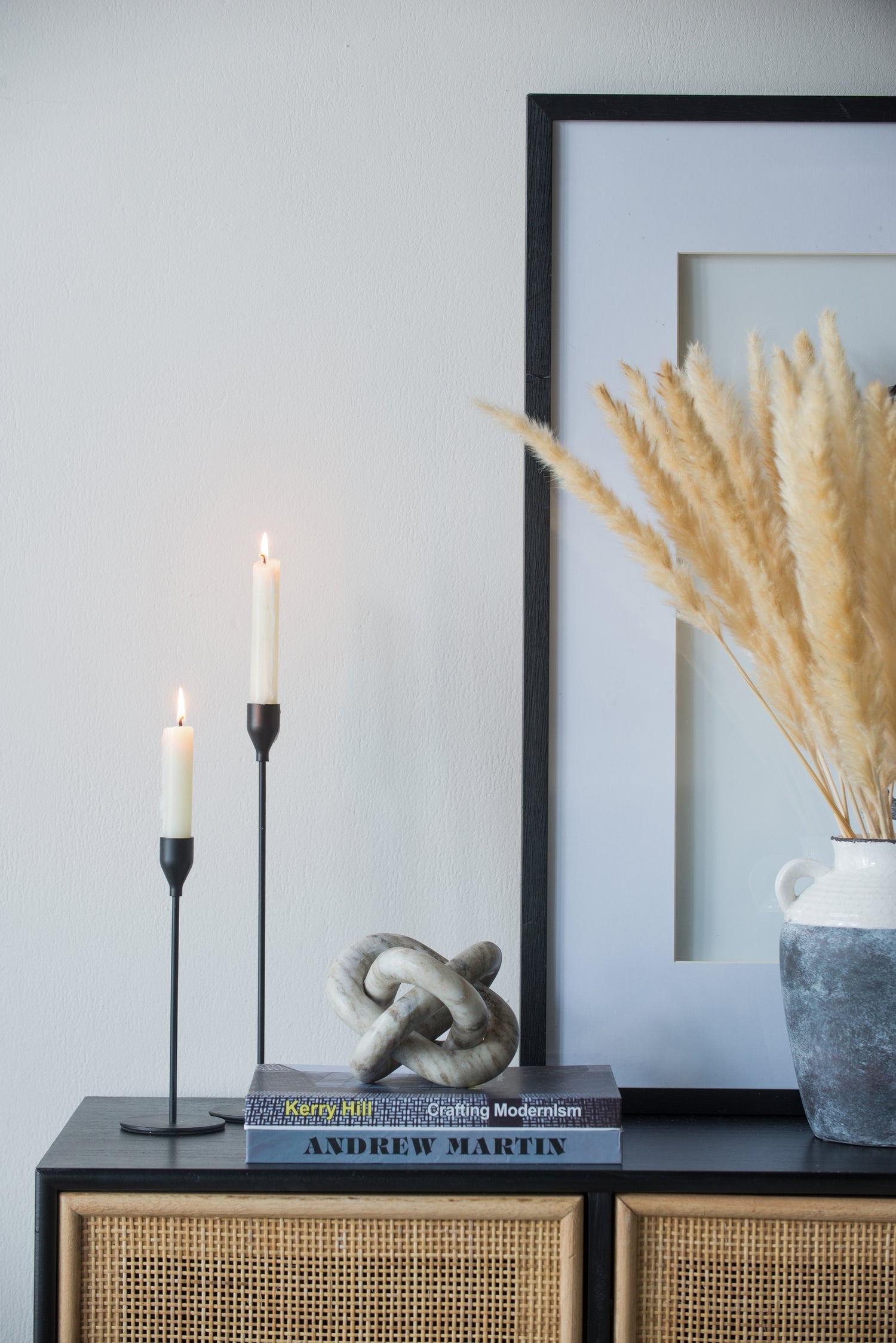 - The minimalist design and neutral color allow the sculpture to complement a wide variety of interior styles, making for an accent which is durable and versatile.