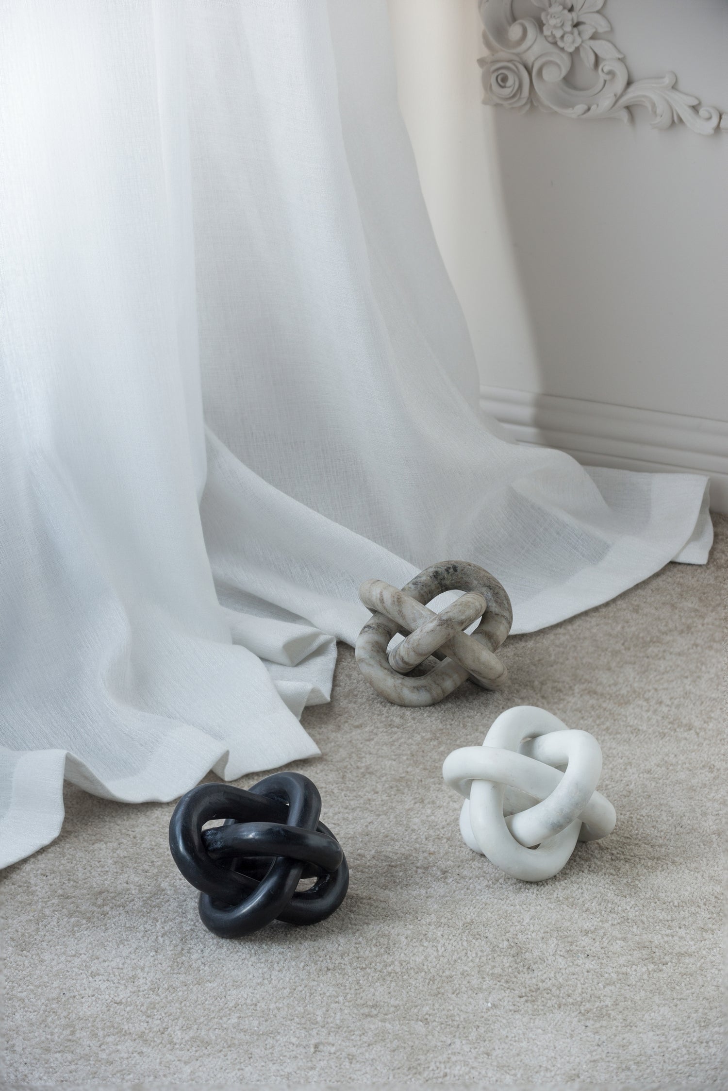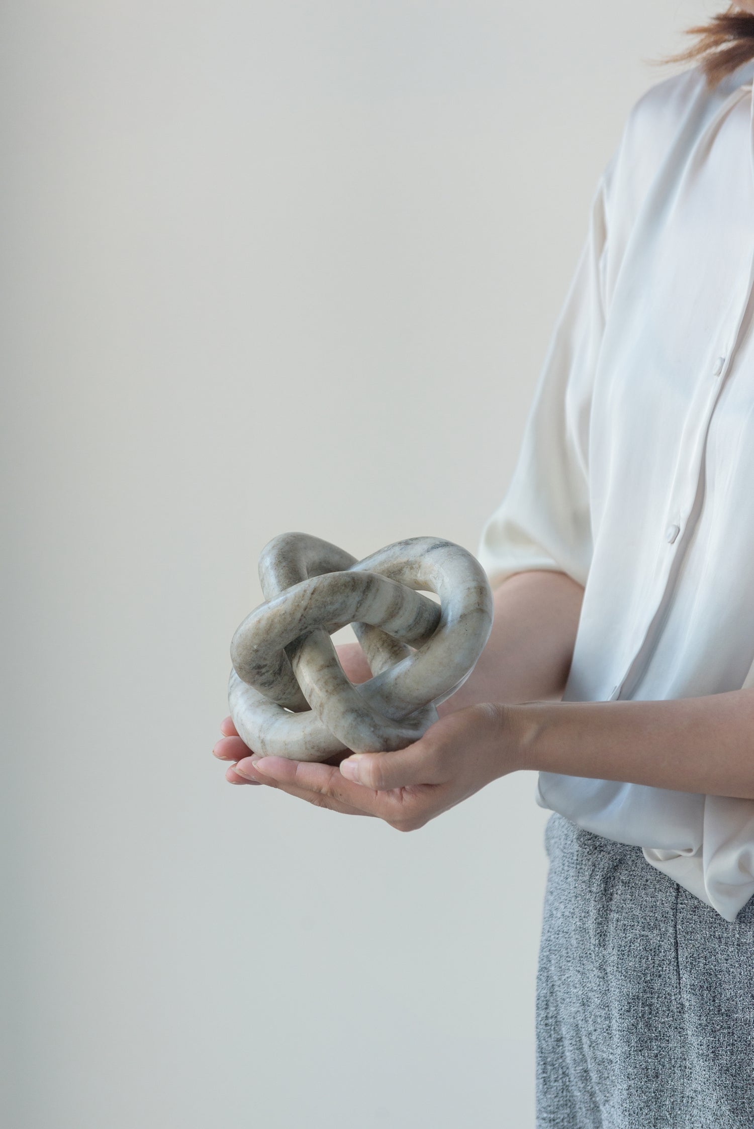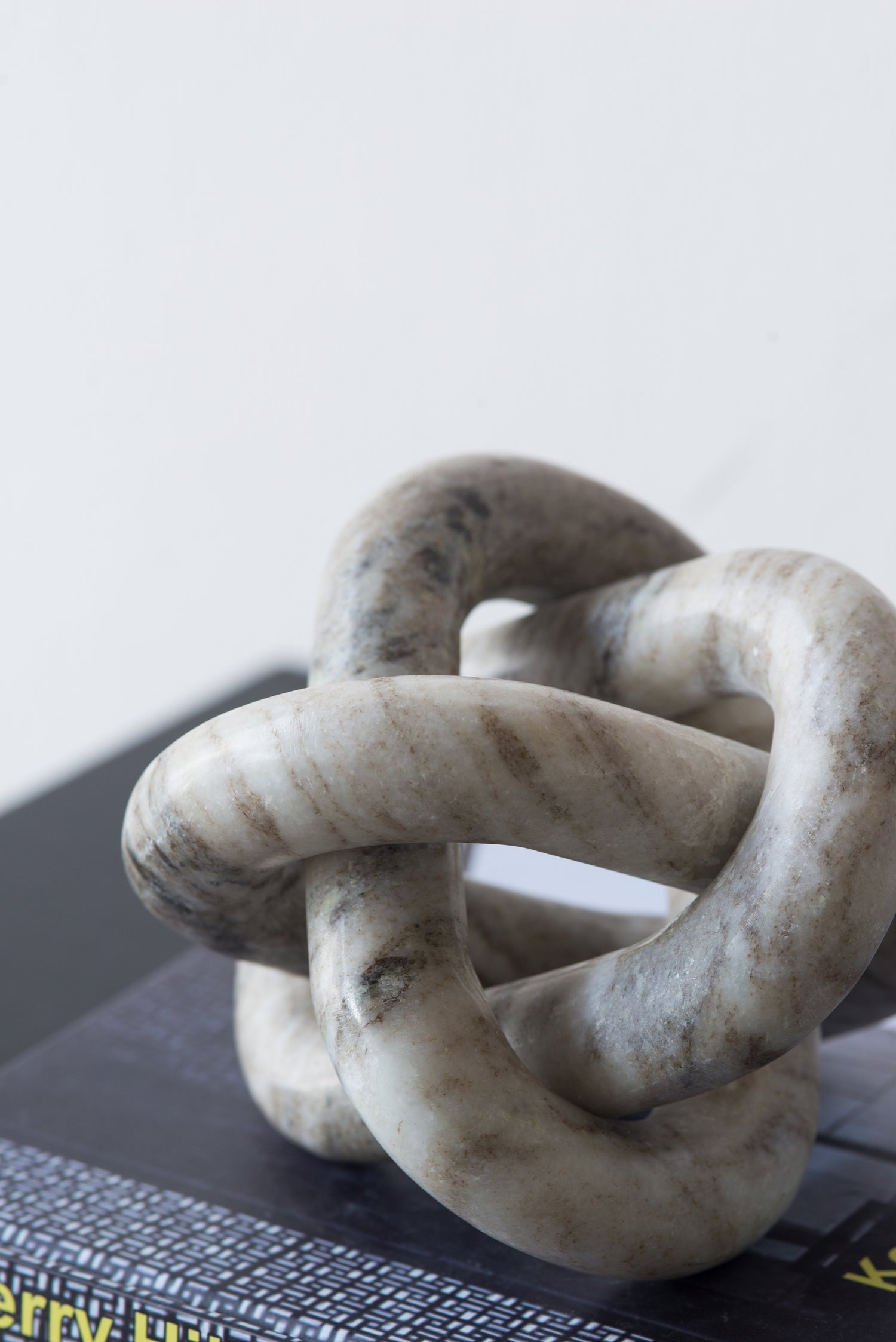 - This abstract marble sculpture features an interconnecting design and a natural cream finish.