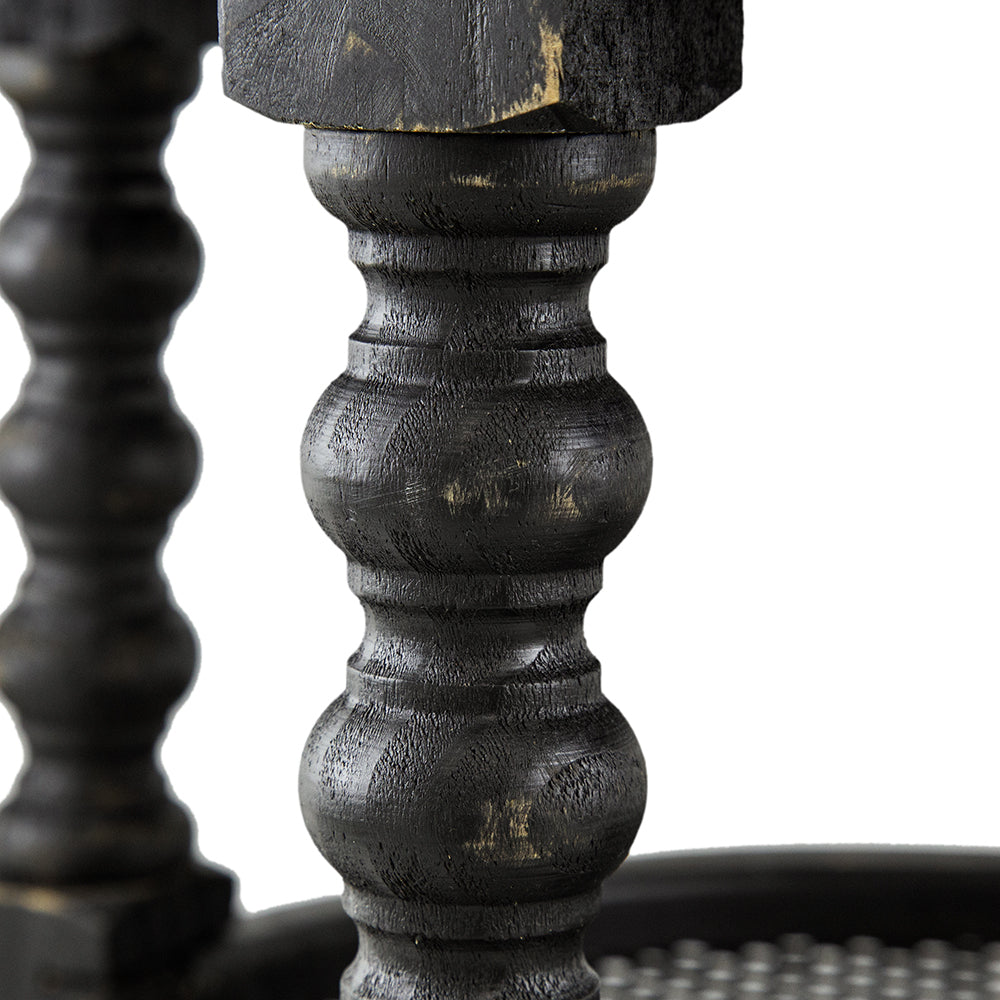 Update your living room furniture with the traditional style Hilton Head coffee table. Made from wood and rattan in black finish, it features a round tabletop and comes with two open cane shelves. Supported on turned legs, it showcases the details that impart a unique character to its design.