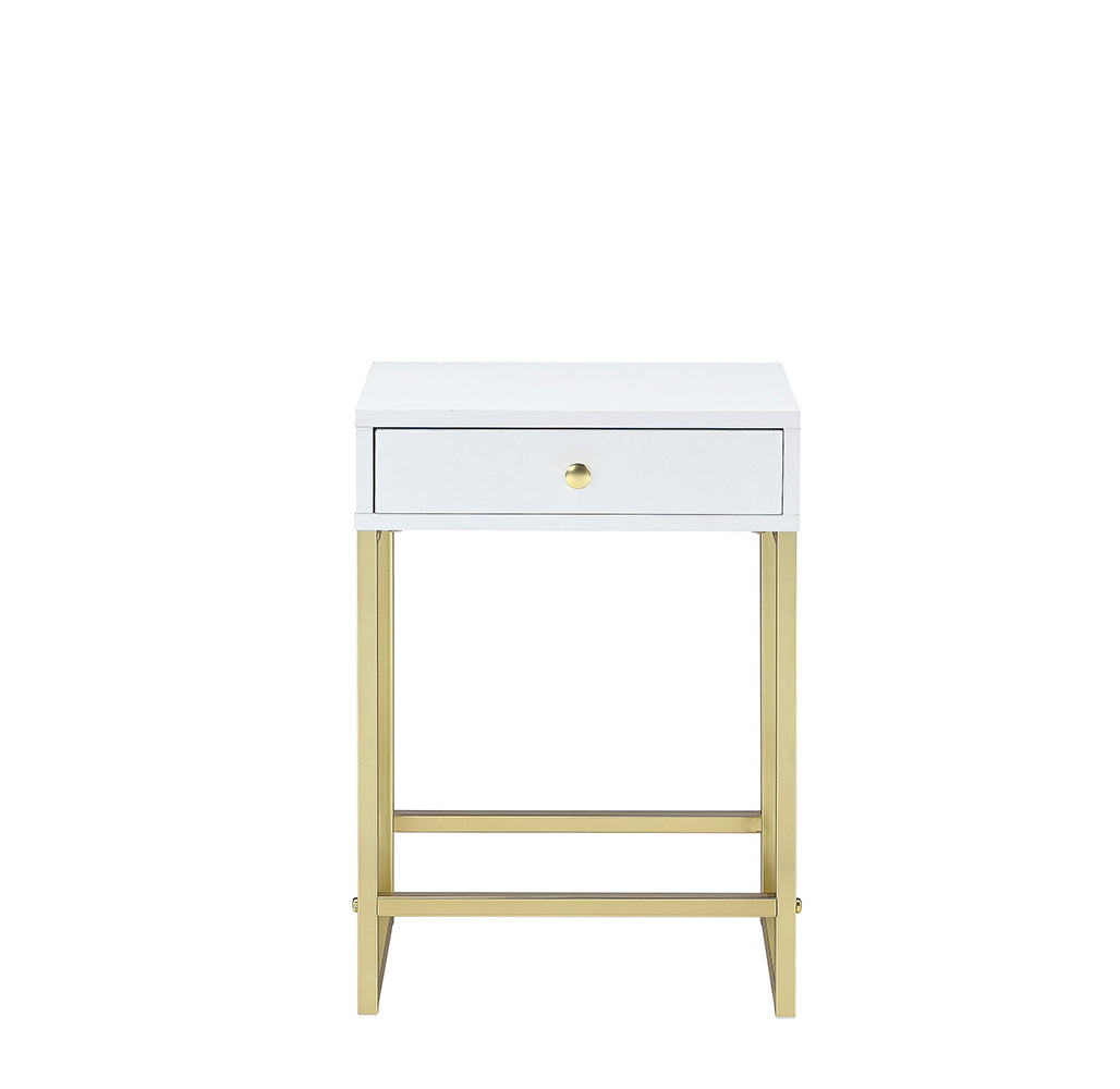 - Modern Design: Rectangular accent table featuring a sleek white veneer top and a sturdy brass-finish metal tube base for a contemporary aesthetic.