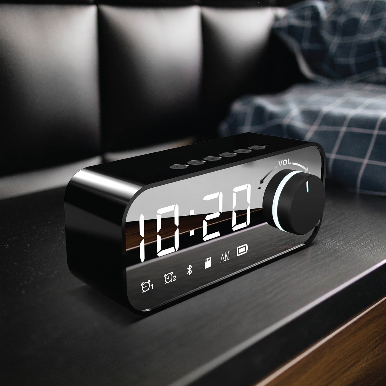 - Dual Functionality: Conveniently combines alarm clock and Bluetooth wireless speaker in one device.