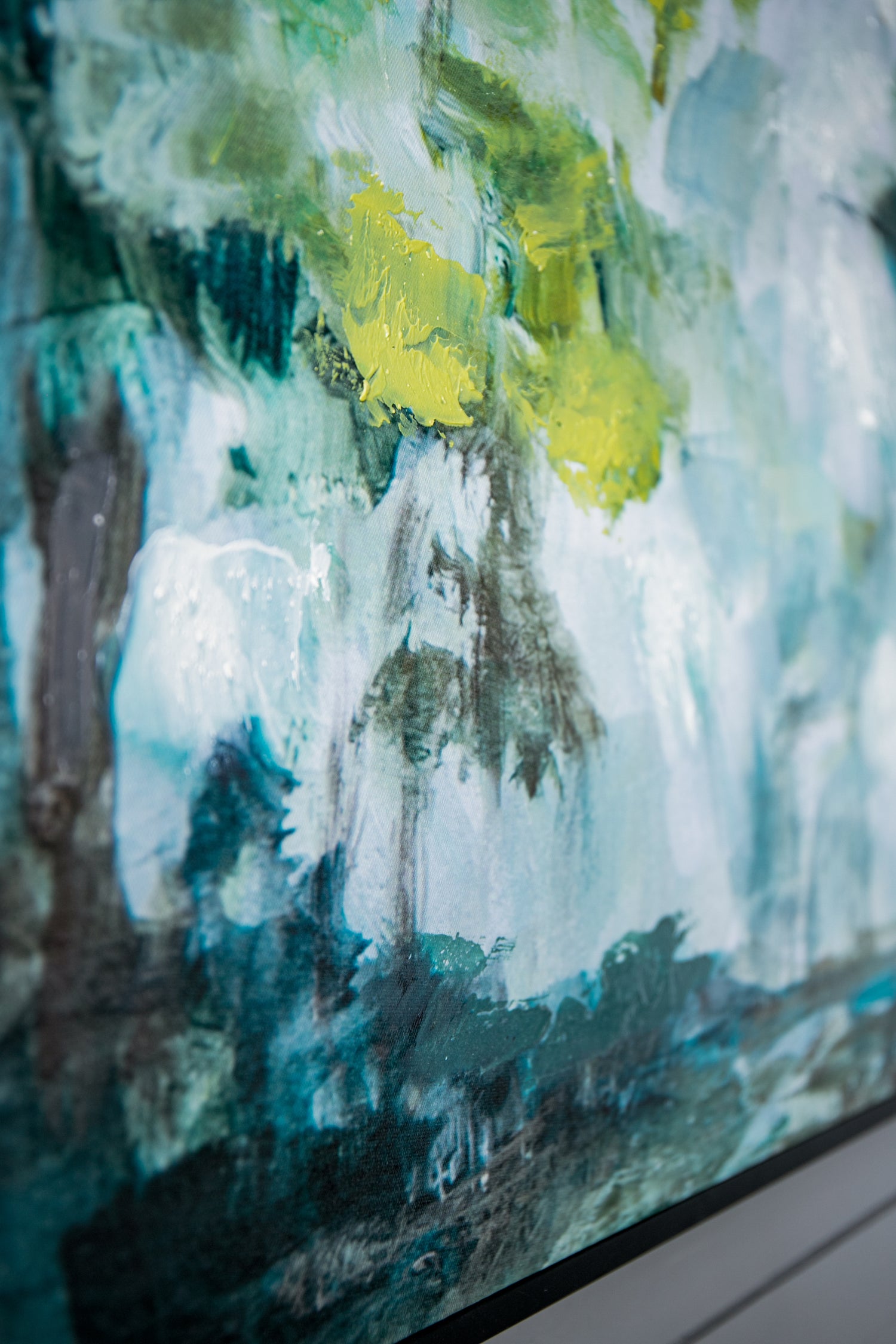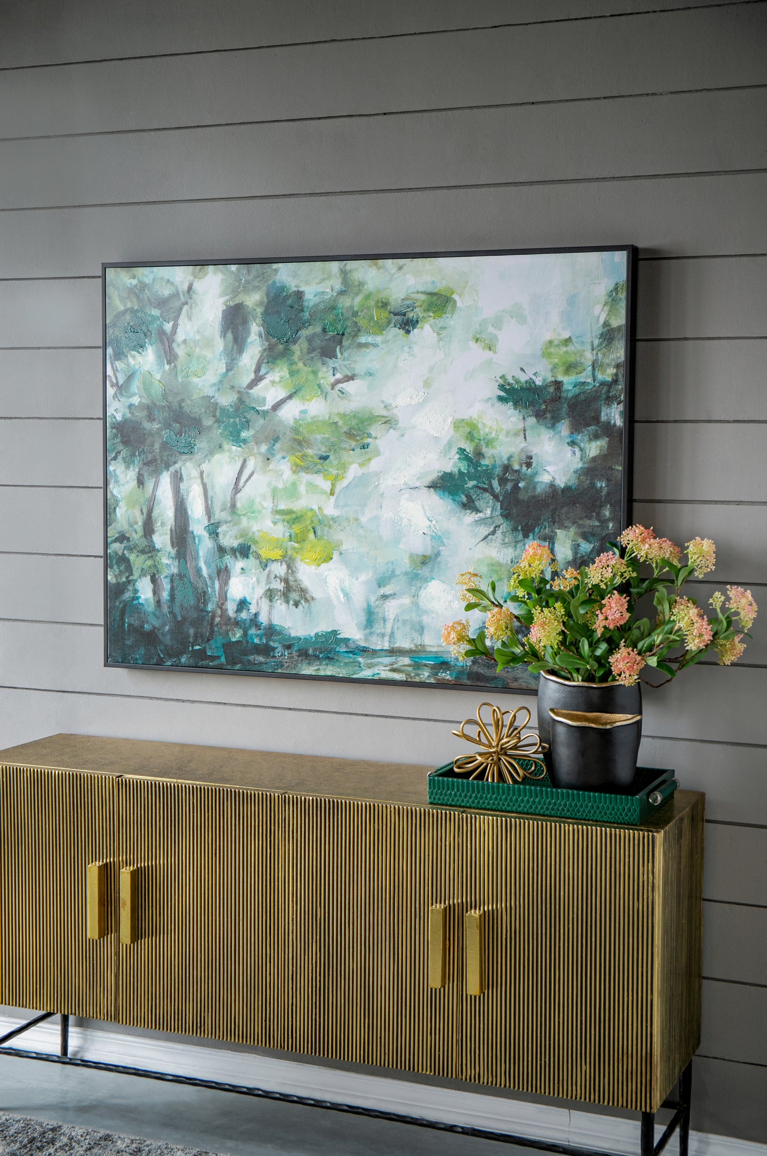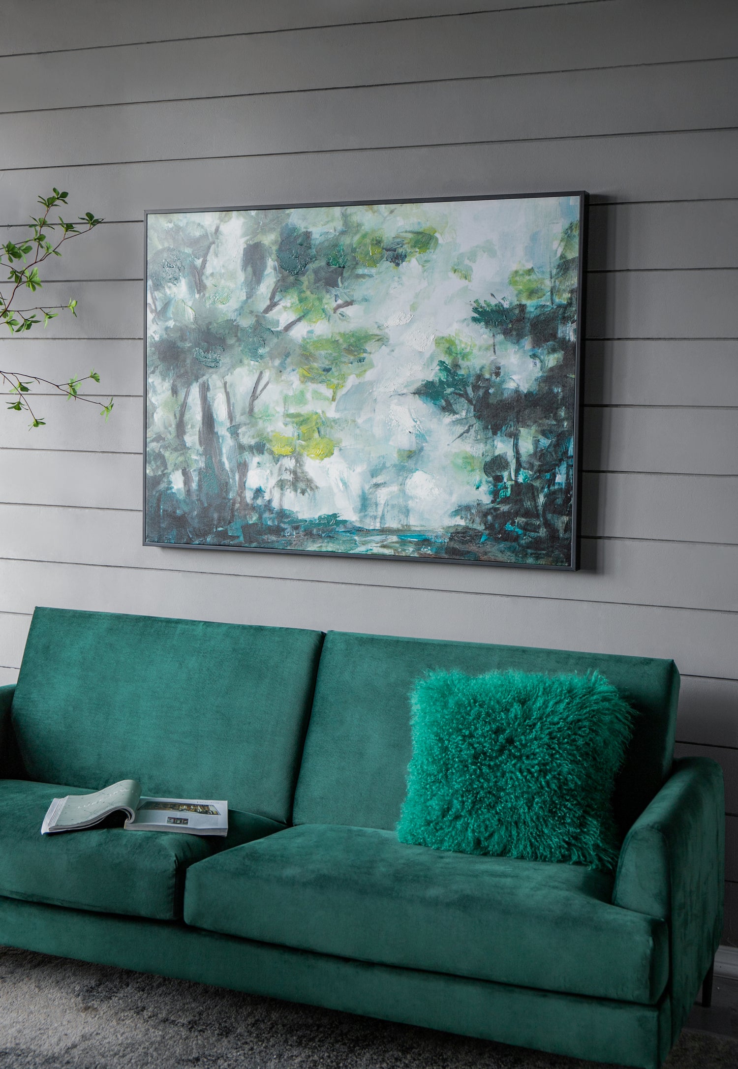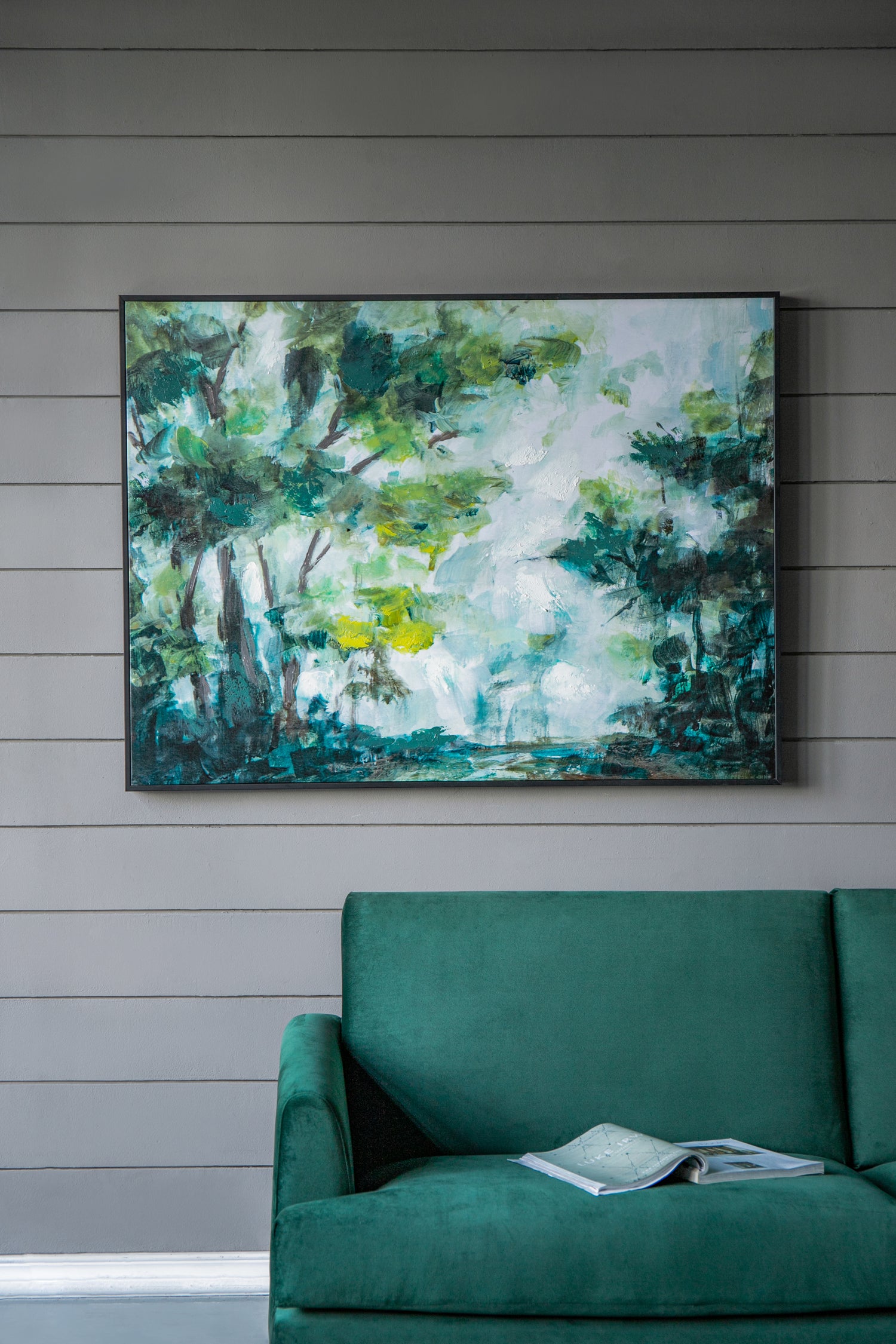 The Edward Forest Landscape Watercolor Wall Art brings nature indoors through the detailed print. The shades of green and hints of blue emulates the color pallet found in the forest leading to serenity and translates into design. Framed in black offers a sleek element to the artwork. Paired over a console in the foyer or feature art in the living room,contemporary artwork will elevate any space.