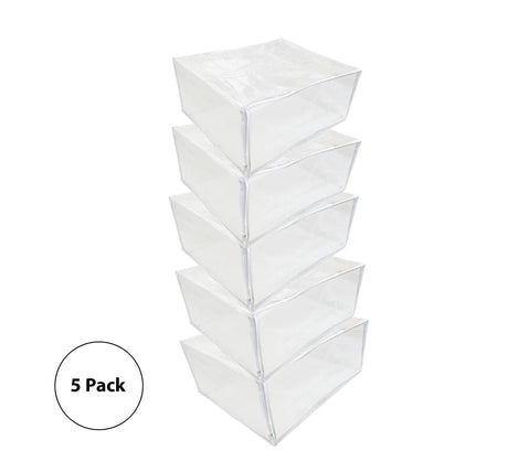 Set of 5 Clear Vinyl Zippered Storage Bags 25x21x11 Inch