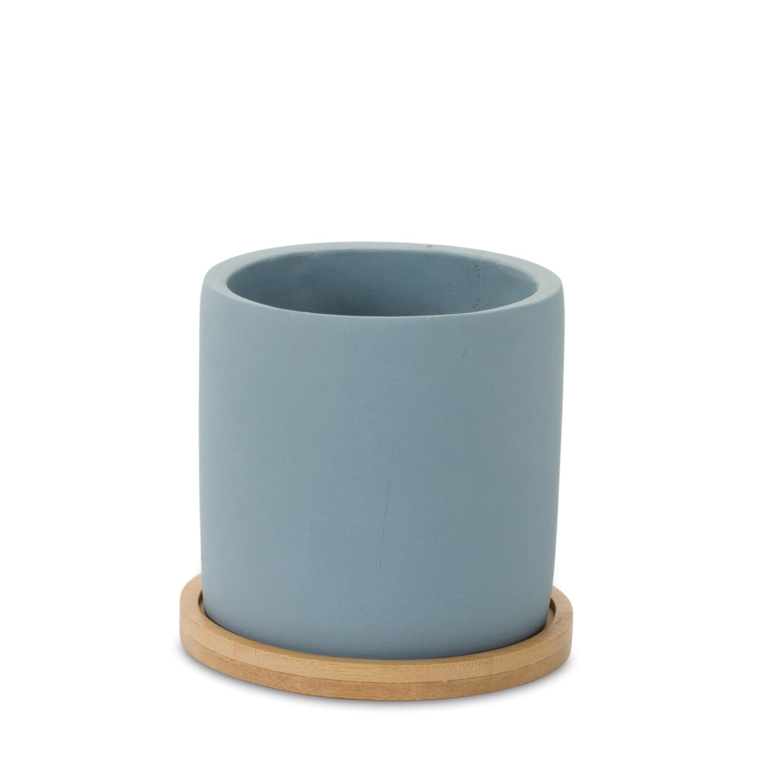 Create an inviting space with our Stone Planters! Our matte blue finish, natural wood plate accent, and cement & sand stone composition add a touch of sophistication that will bring your plants to life. Display your plants in style with these planters and enjoy their beauty for years to come. Whether you're looking to spruce up a room or make a statement outdoors, these planters will have the perfect fit for you.