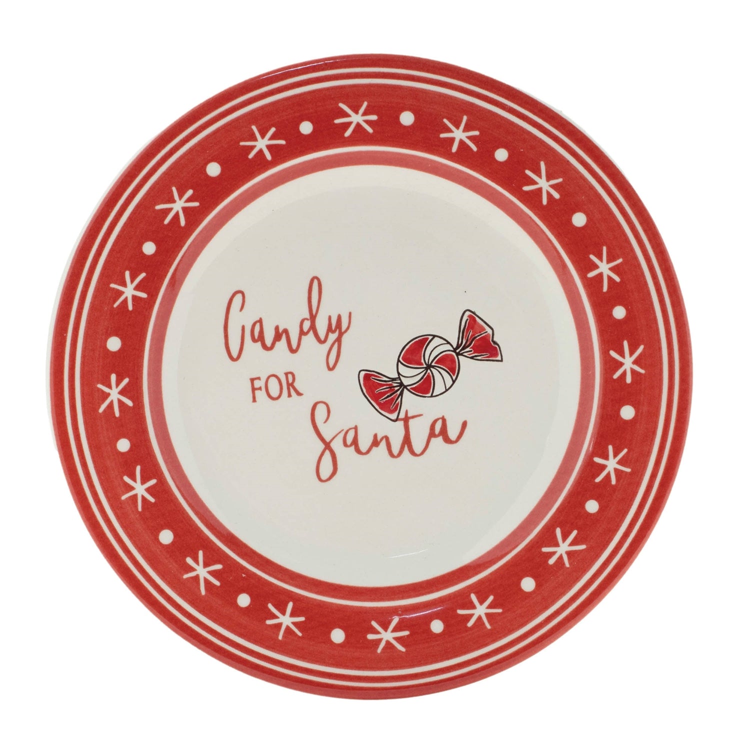 Serve up sweet holiday treats with this Ceramic Santa Candy Plate Set. Featuring two festive designs—one with classic red and white stripes and the other adorned with snowflakes and peppermint candy accents—these plates bring cheerful charm to your Christmas celebrations. Perfect for setting out Santa’s milk and cookies on Christmas Eve or sharing holiday candies with guests. Sold in a set of four with two assorted designs to mix and match for a fun and festive tabletop display.