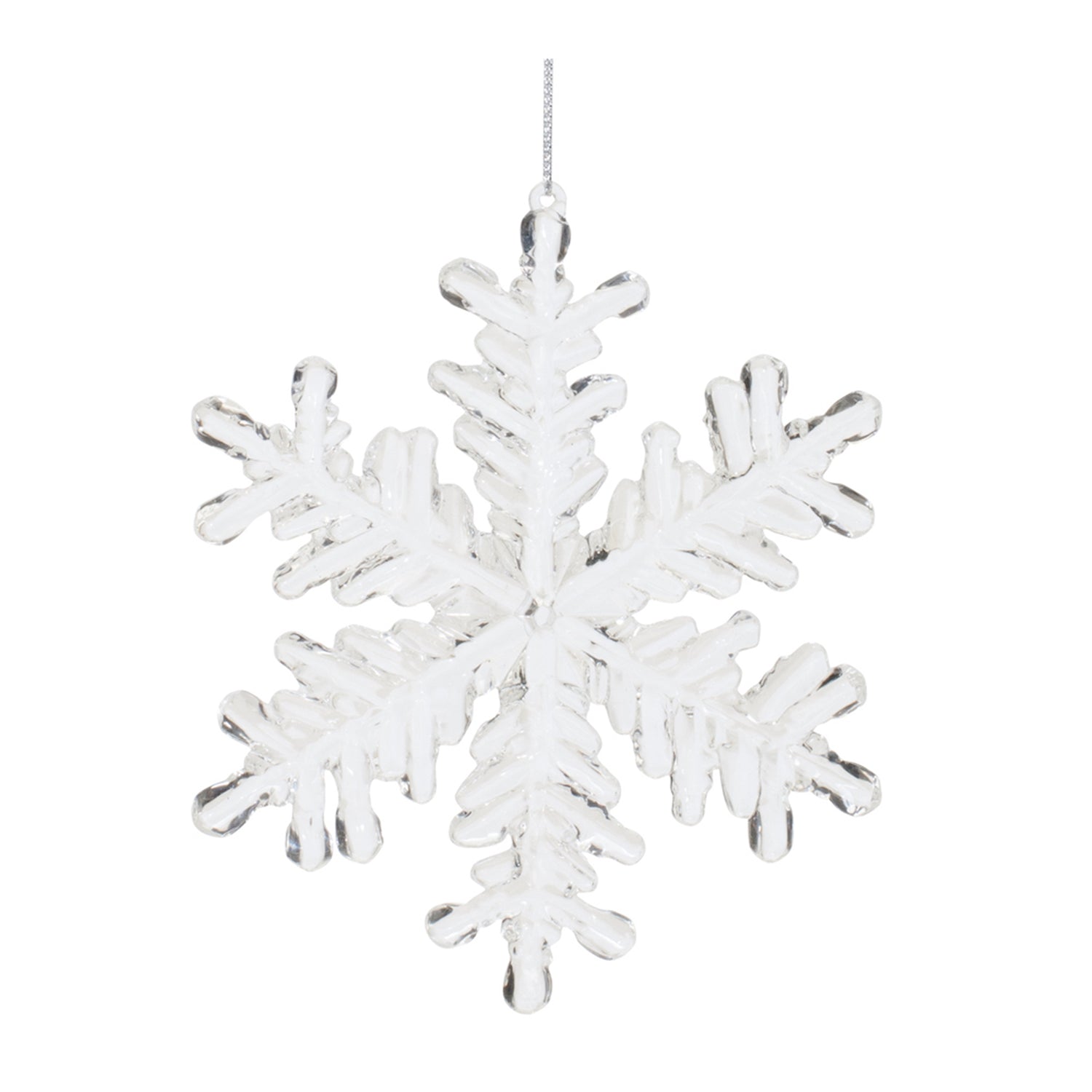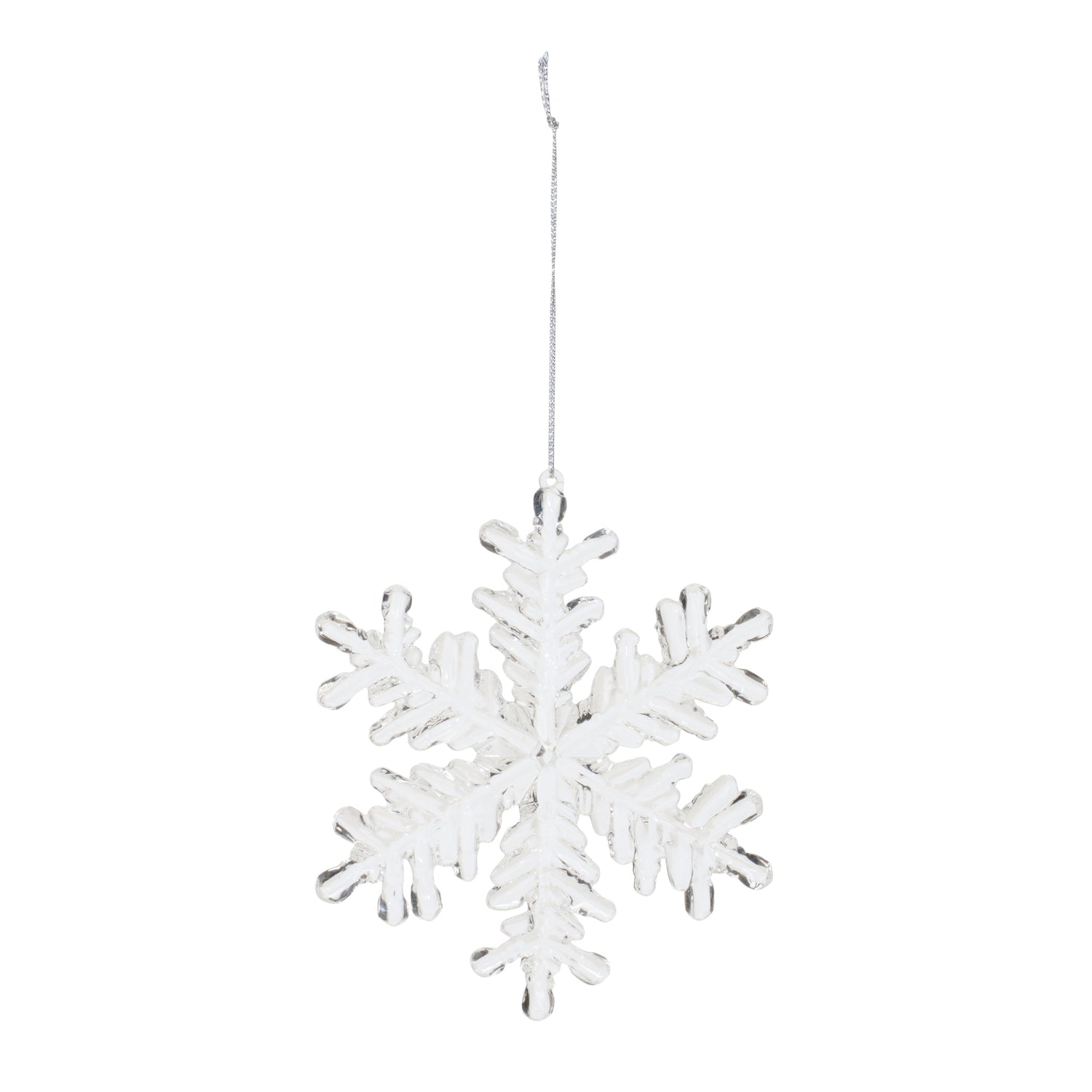 Adorn your Christmas tree with this stunning set of Acrylic Snowflake Ornaments. Featuring 12 pieces, the chic clear finish paired with the traditional snowflake design is the perfect combination to create a memorable display. The quality acrylic composition with delicate silver string hanger is sure to endure for seasons to come. Whether you're adding a touch of cheer to your home or gifting to a loved one, these ornaments will definitely bring holiday spirit to your home.