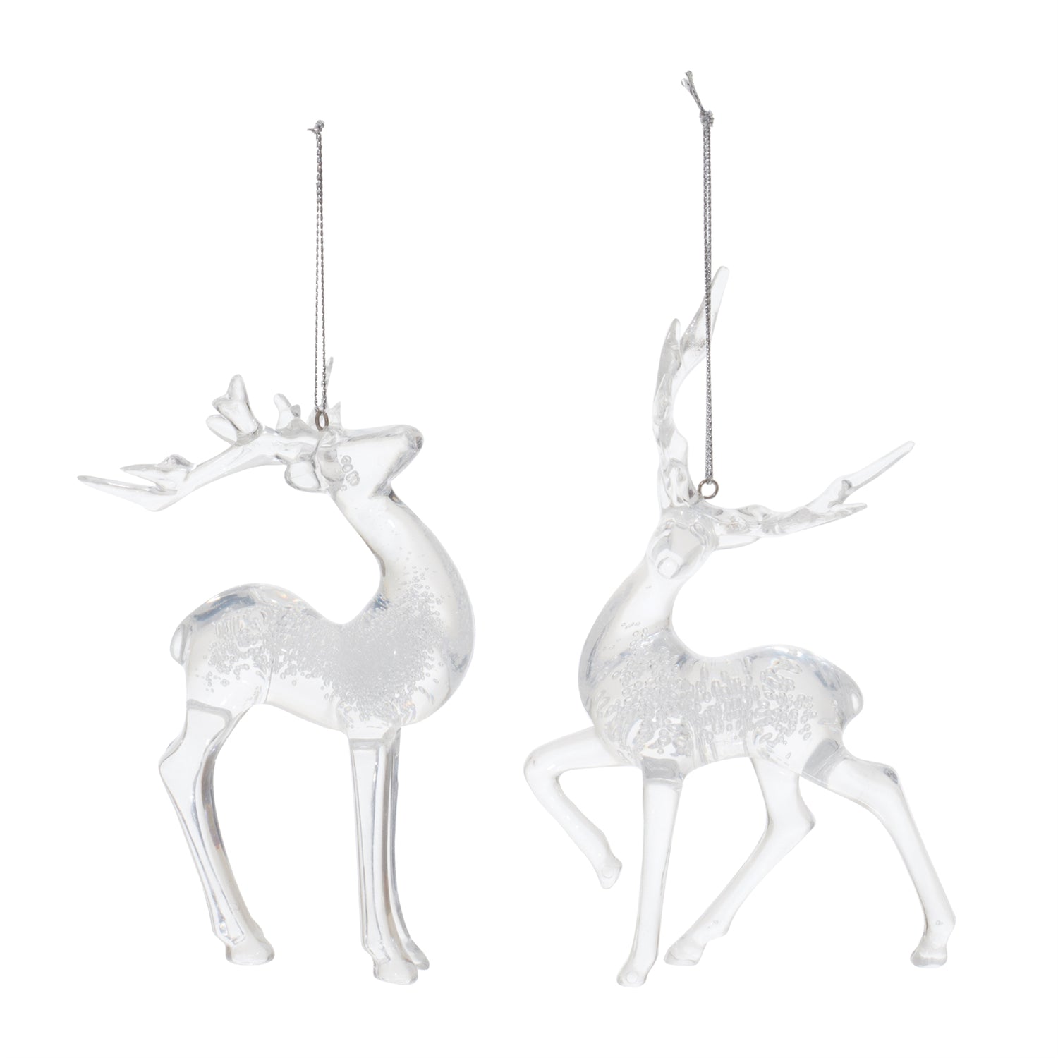 Adorn your Christmas tree with this stunning set of Deer Ornaments. Featuring six pieces and two assorted designs, the chic clear finish paired with the rustic deer design is the perfect combination to create a memorable display. The quality plastic composition with delicate silver string hanger is sure to endure for seasons to come. Whether you're adding a touch of cheer to your home or gifting to a loved one, these ornaments will definitely bring holiday spirit to your home.