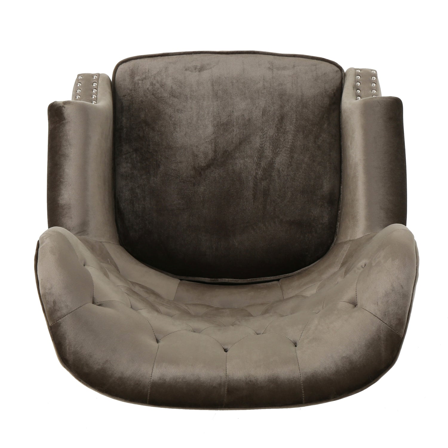 - With soft to the touch velvet being all the rage right now, you can’t go wrong with this velvet Club chair. Featuring hand crafted detail work, this chair is a must have and is exceedingly comfortable to boot. Perfectly suited for any room in your home, You will be happy each and every time you sit in this chair. Your guests and family are sure to be envious of your chair and will ask you where they can get one of their own
