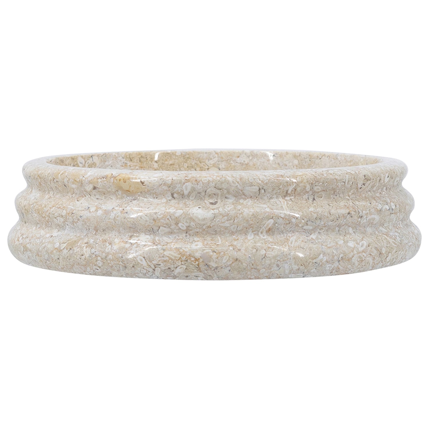 - D8.5x2' Decorative Cream Marble Bowl with Round Ribbed Design