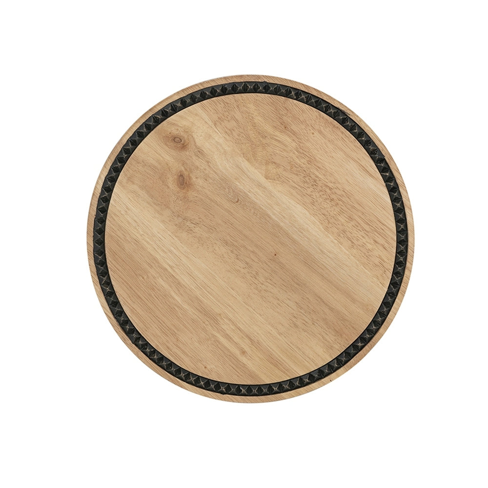 Highlighting the artistic beauty of natural decor, this pedestal tray features a warm brown wooden top, bold black accents, and a sculptural iron base. Perfect for displaying a vibrant centerpiece, desserts, or jewelry, it will serve as a striking focal point on any tabletop, mantel, or dresser.