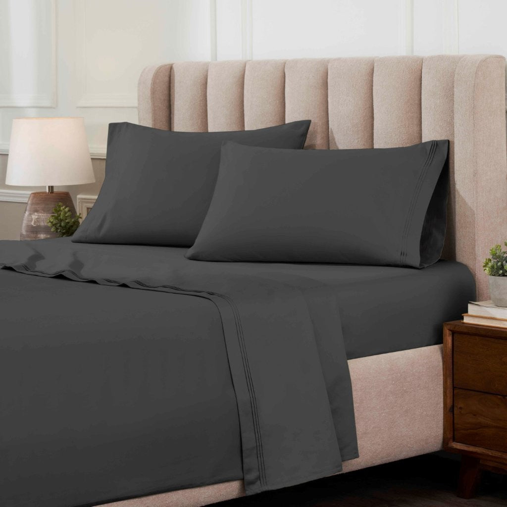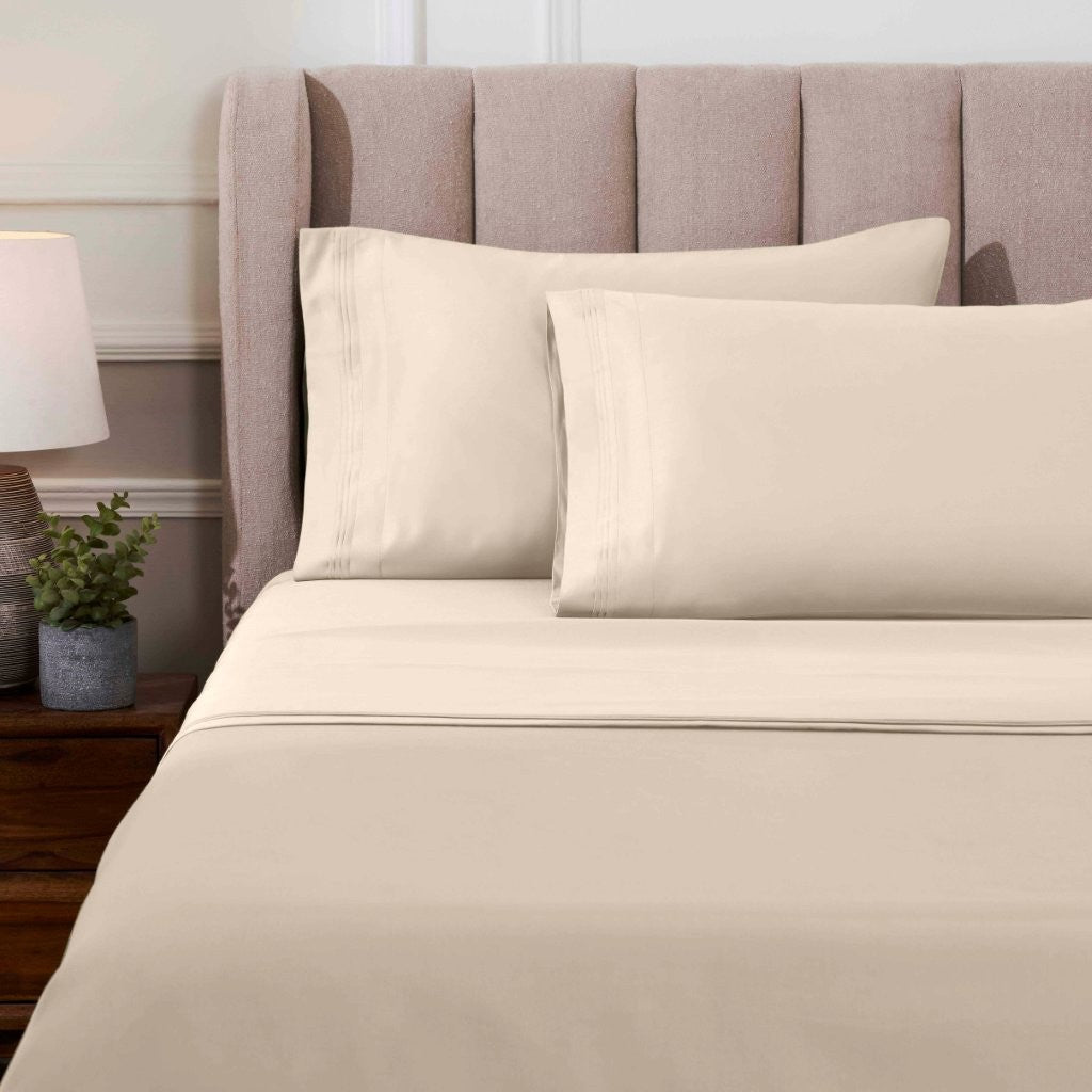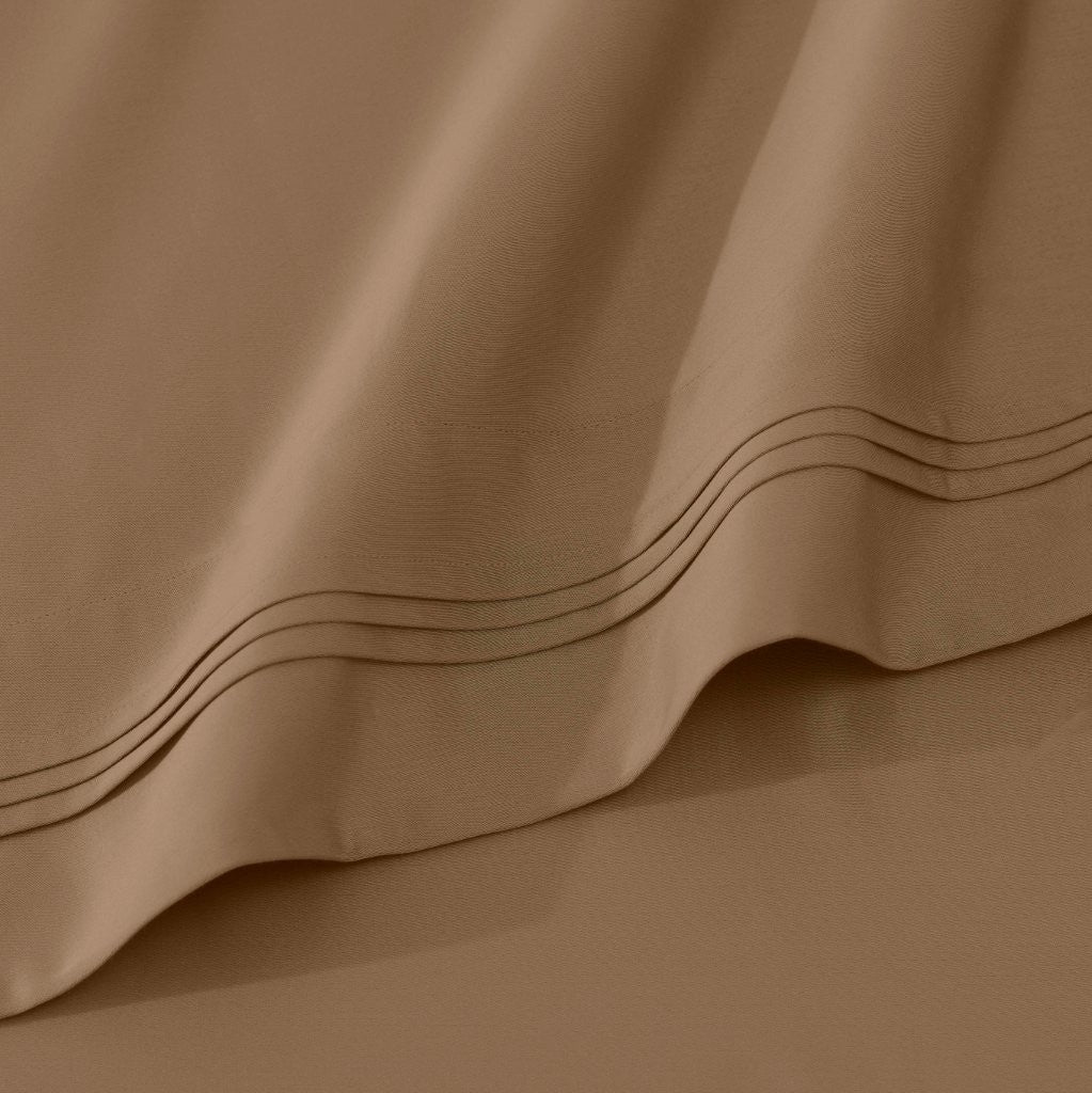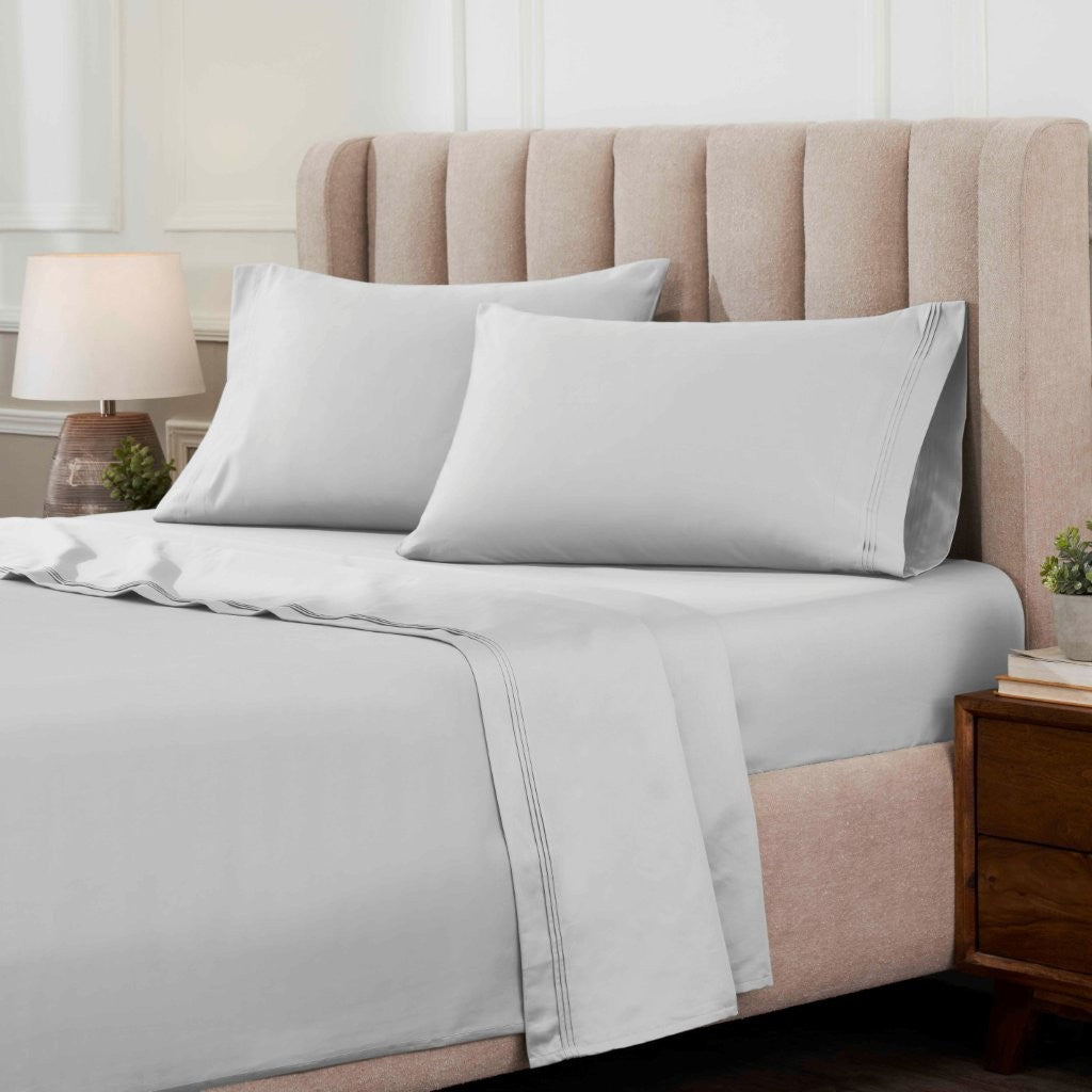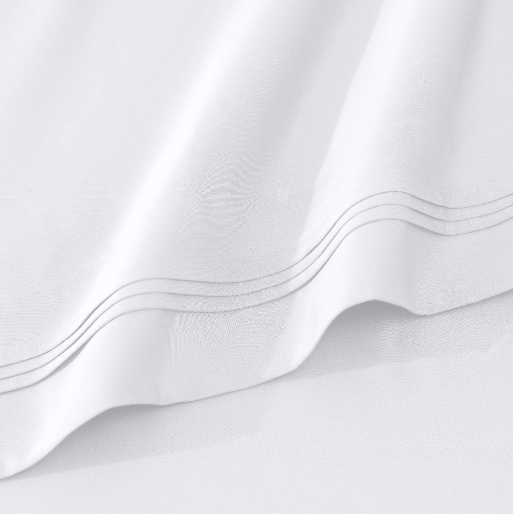 Designed with practical luxury in mind, each set includes a generously sized fitted sheet with deep pockets to accommodate mattresses up to 18" thick, a flat sheet, and matching pillowcases—all finished with refined 4-inch hems for a polished appearance.