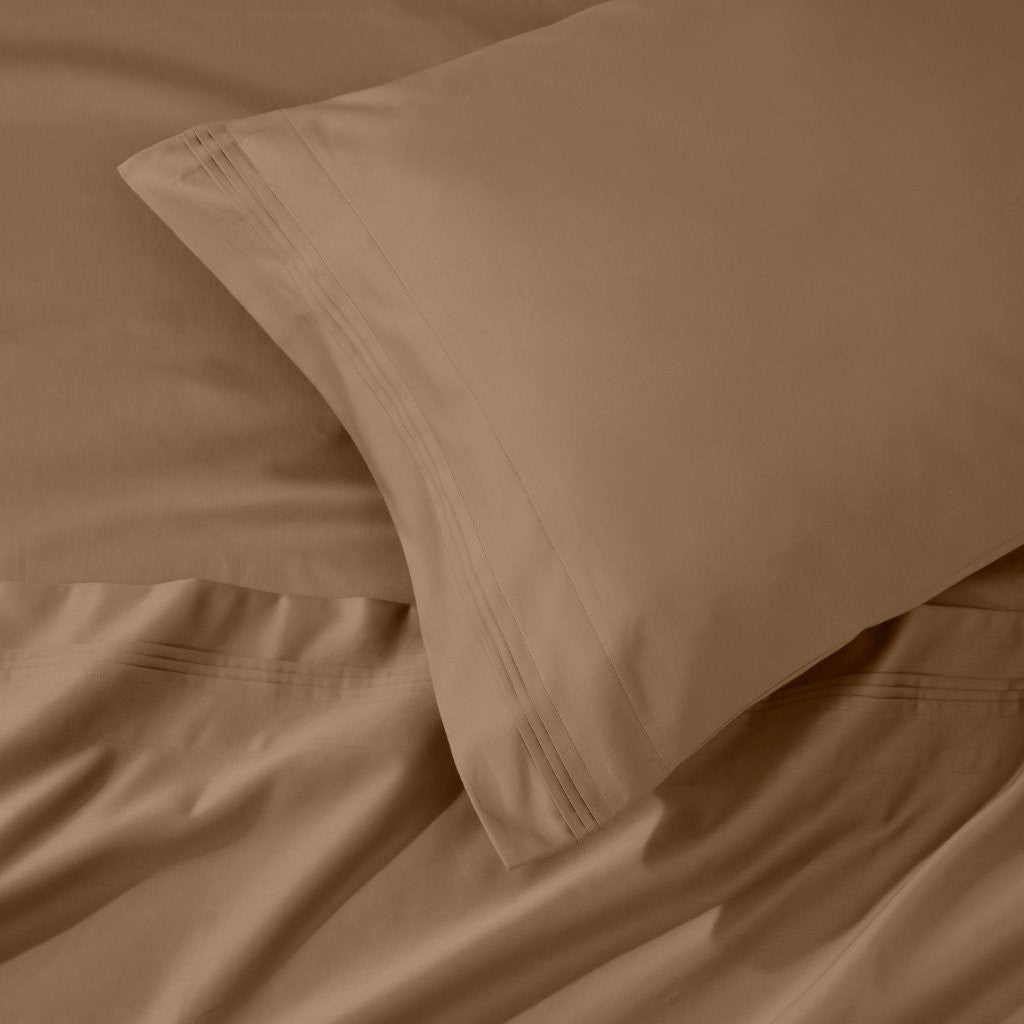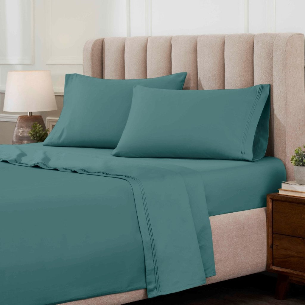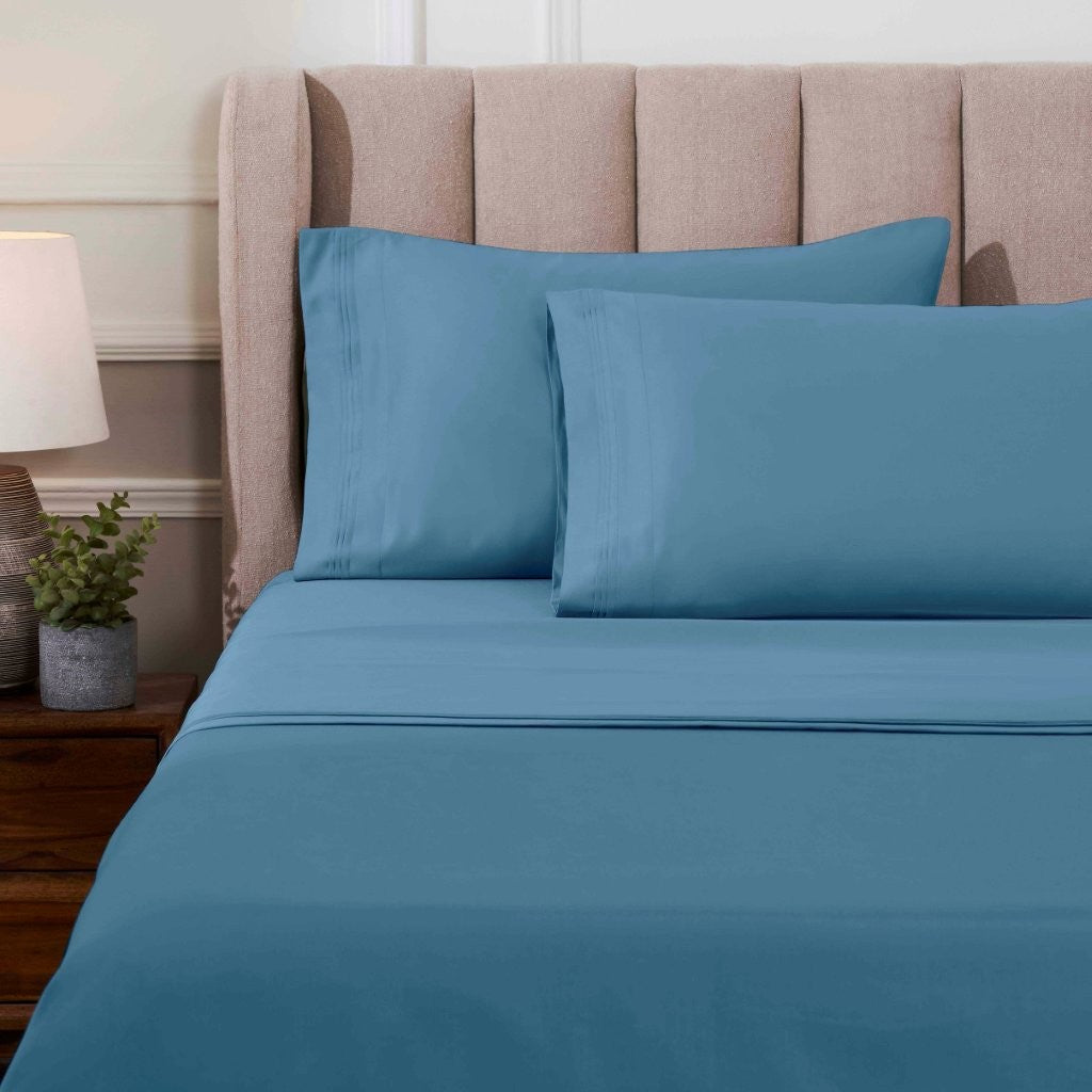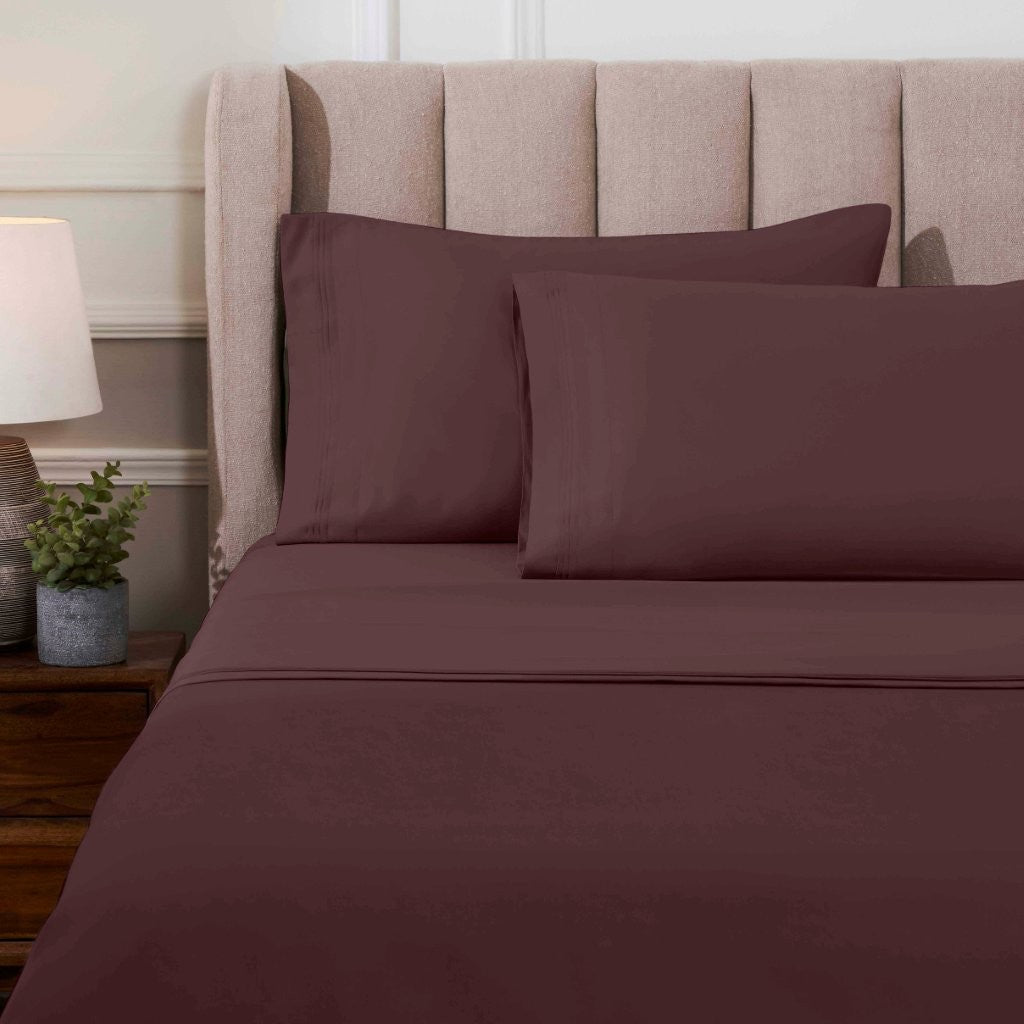 Designed with practical luxury in mind, each set includes a generously sized fitted sheet with deep pockets to accommodate mattresses up to 18" thick, a flat sheet, and matching pillowcases—all finished with refined 4-inch hems for a polished appearance.