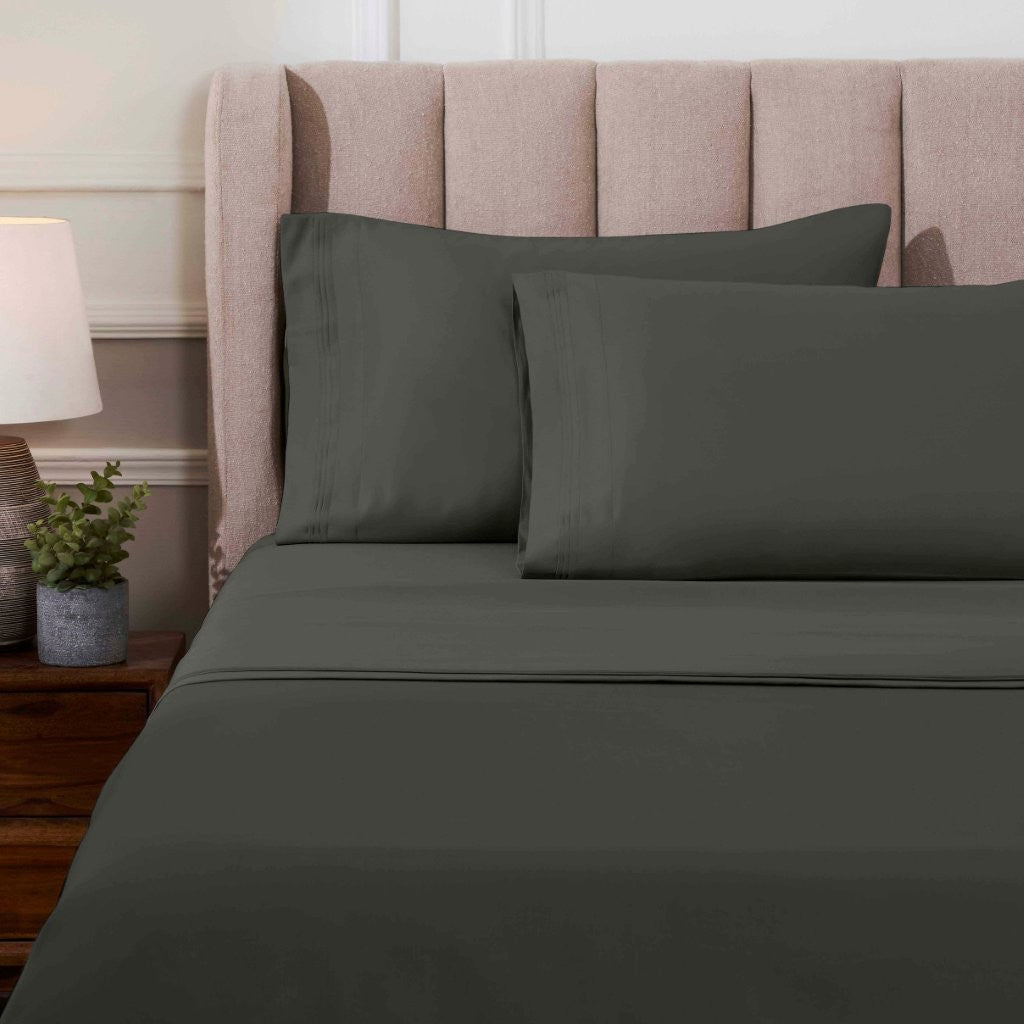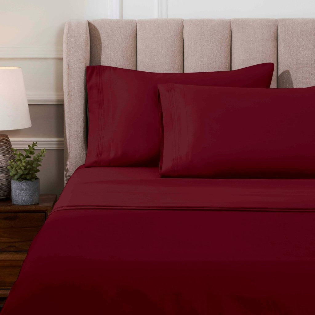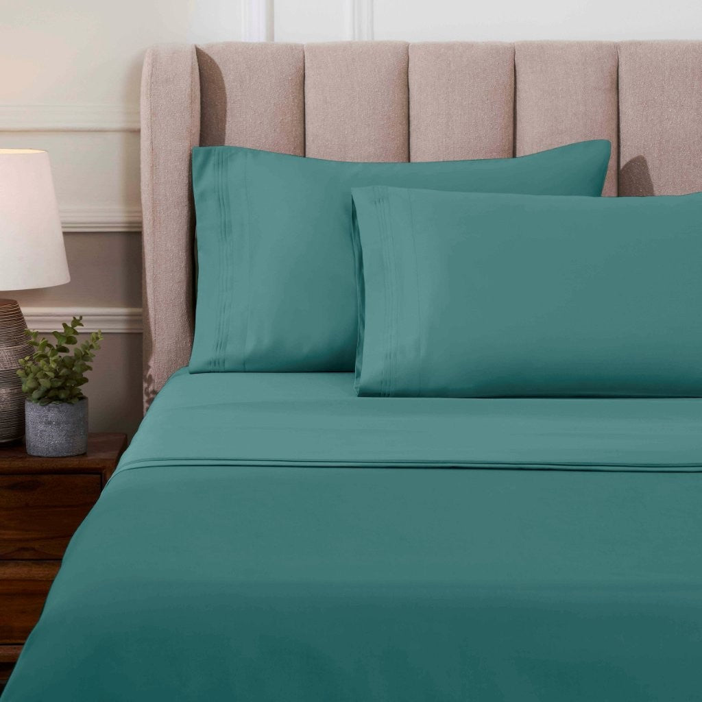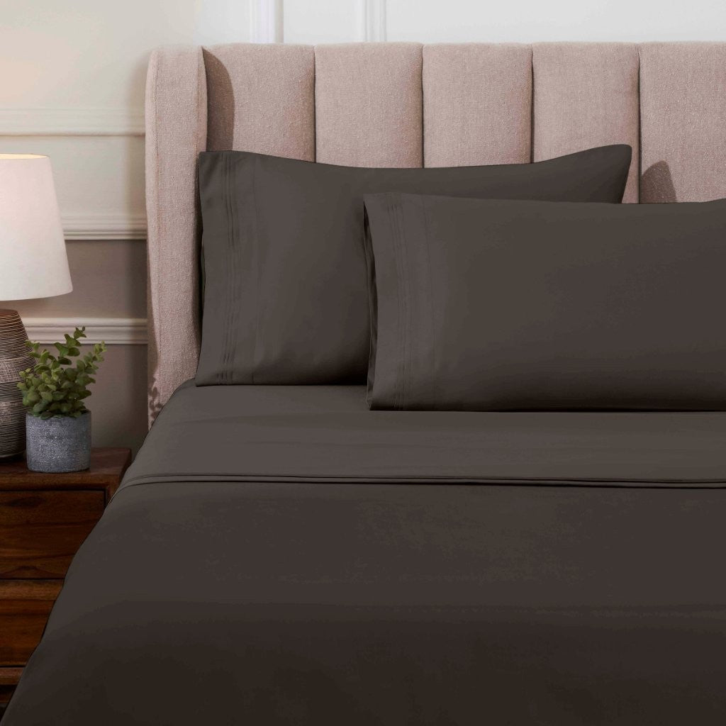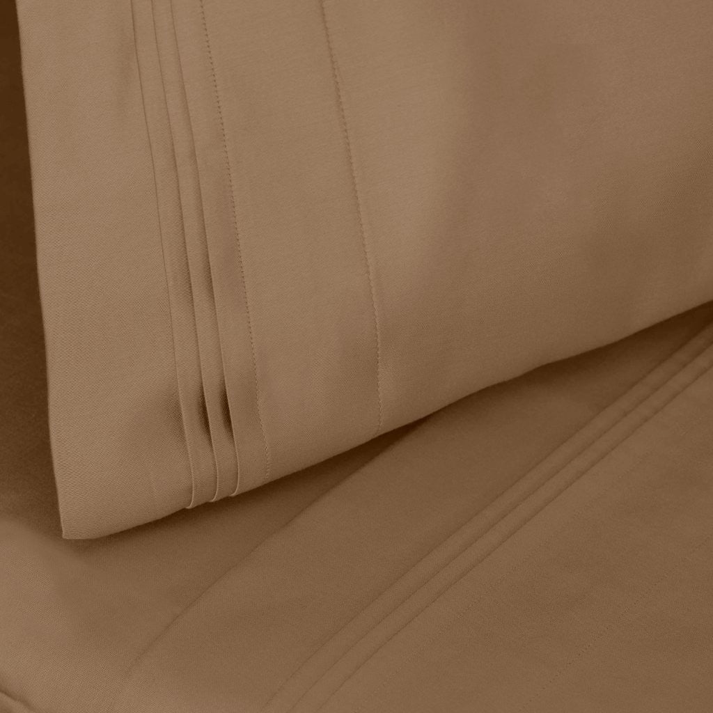 Designed with practical luxury in mind, each set includes a generously sized fitted sheet with deep pockets to accommodate mattresses up to 18" thick, a flat sheet, and matching pillowcases—all finished with refined 4-inch hems for a polished appearance.