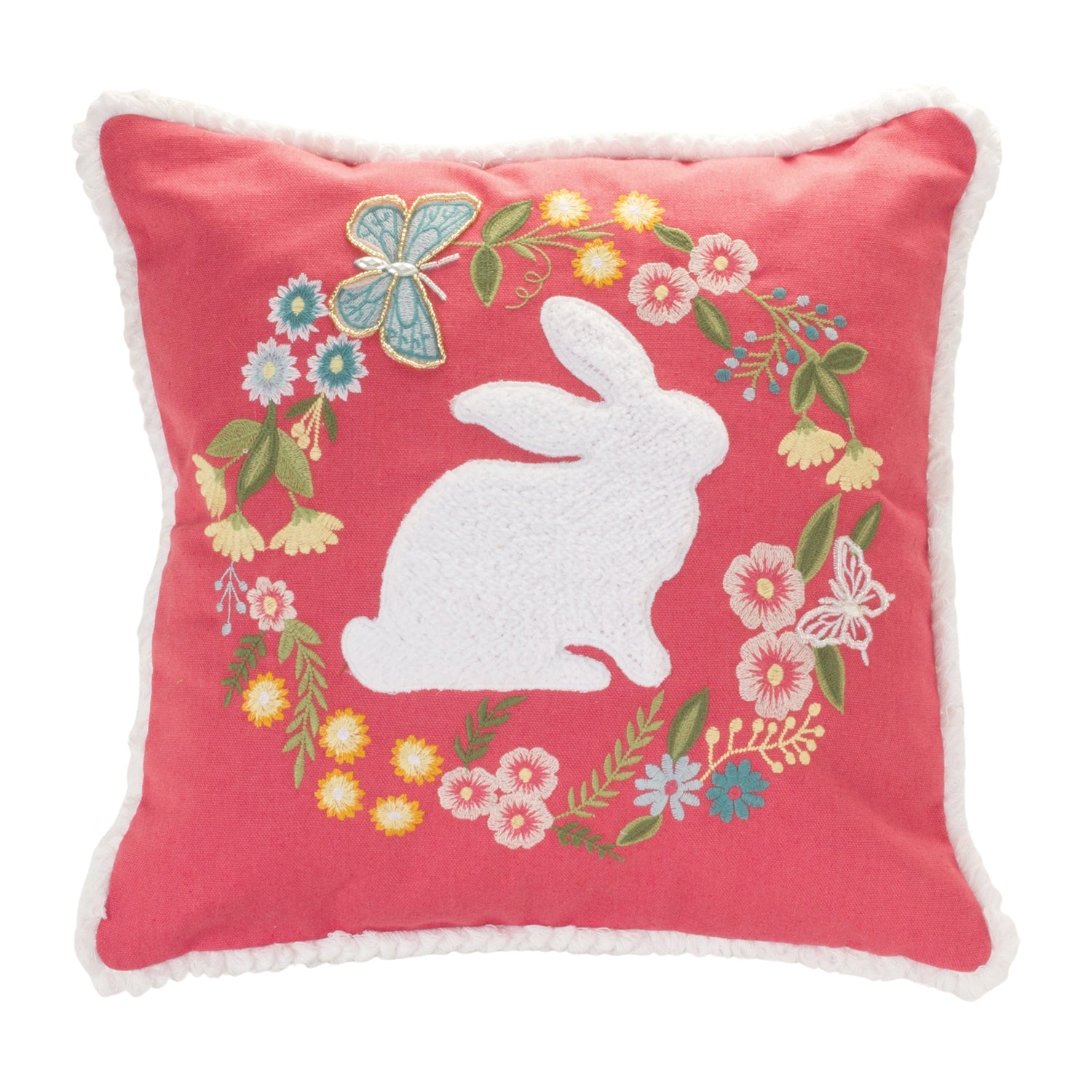 Spring has sprung with the Rabbit Throw Pillow! This beautiful piece of home decor is made of quality polyester fabric and features bright pink and white tones, embroidered with a charming rabbit and floral wreath design. Bring a bit of the outdoors into your living space and give your living room a fresh, vibrant look with this one-of-a-kind Rabbit Throw Pillow. Add some spring into your home decor today!