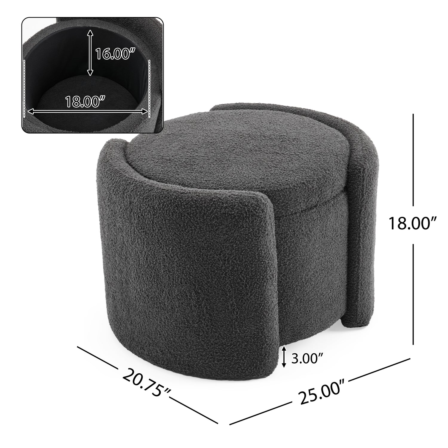 Cozy Boucle Storage Ottoman: Stylish Comfort with Hidden Storage, Grey, Lamb Fleece, 25x20.75x18 inches