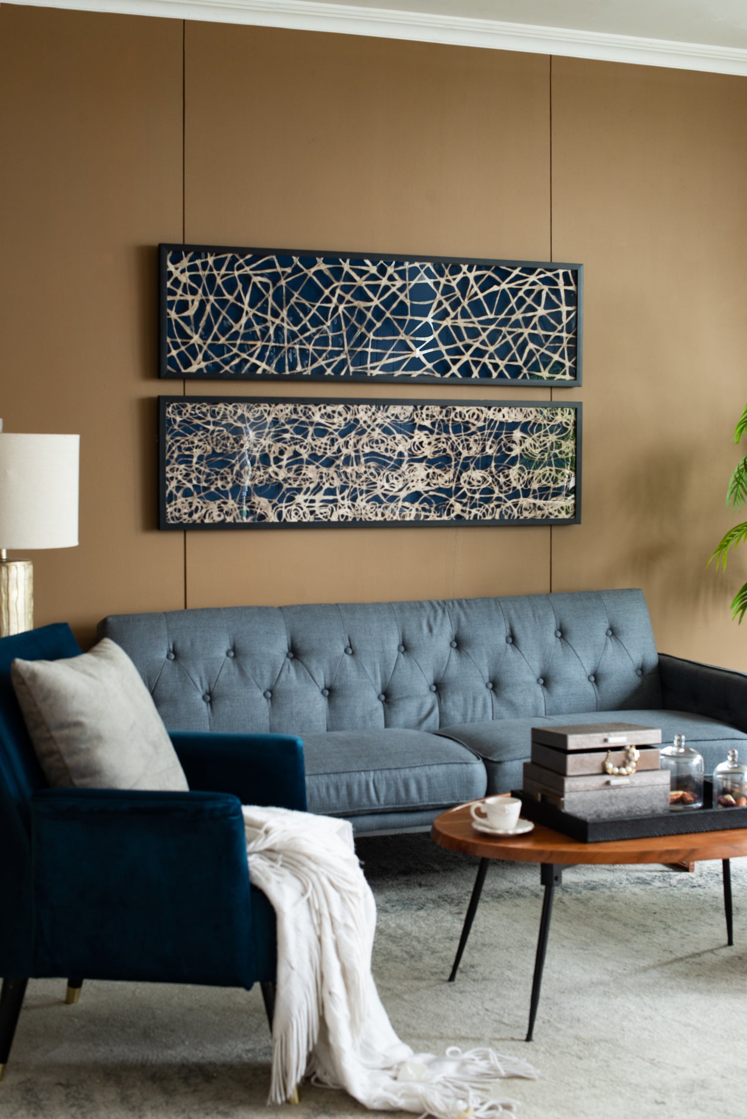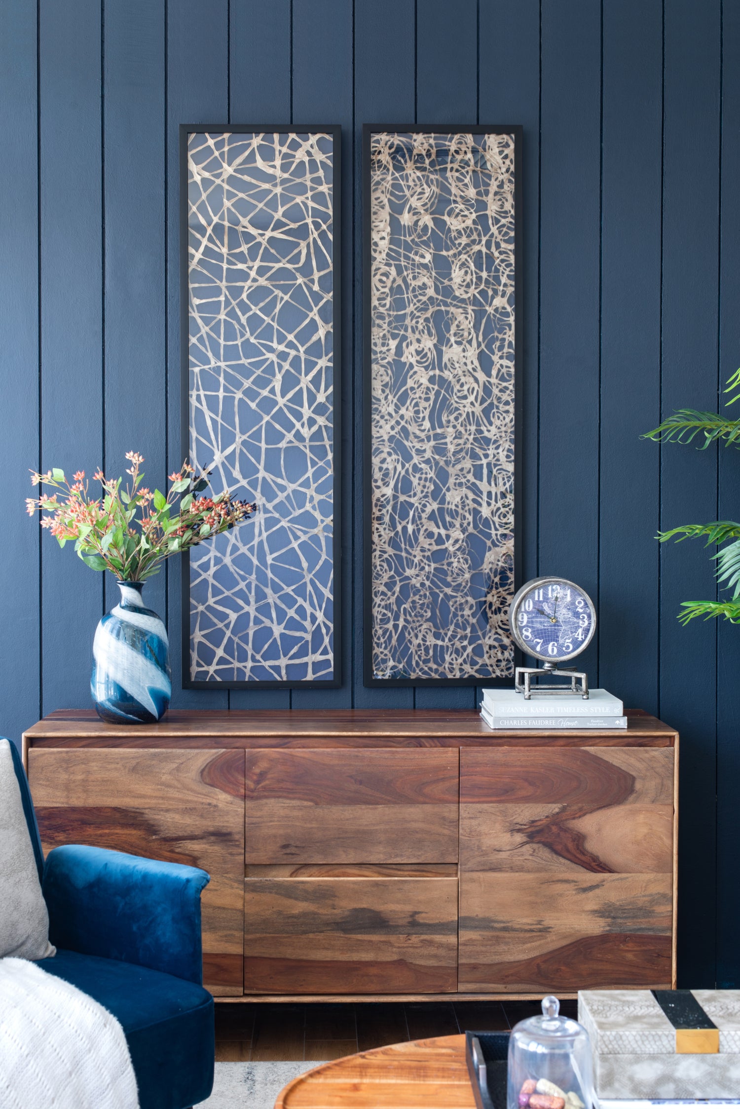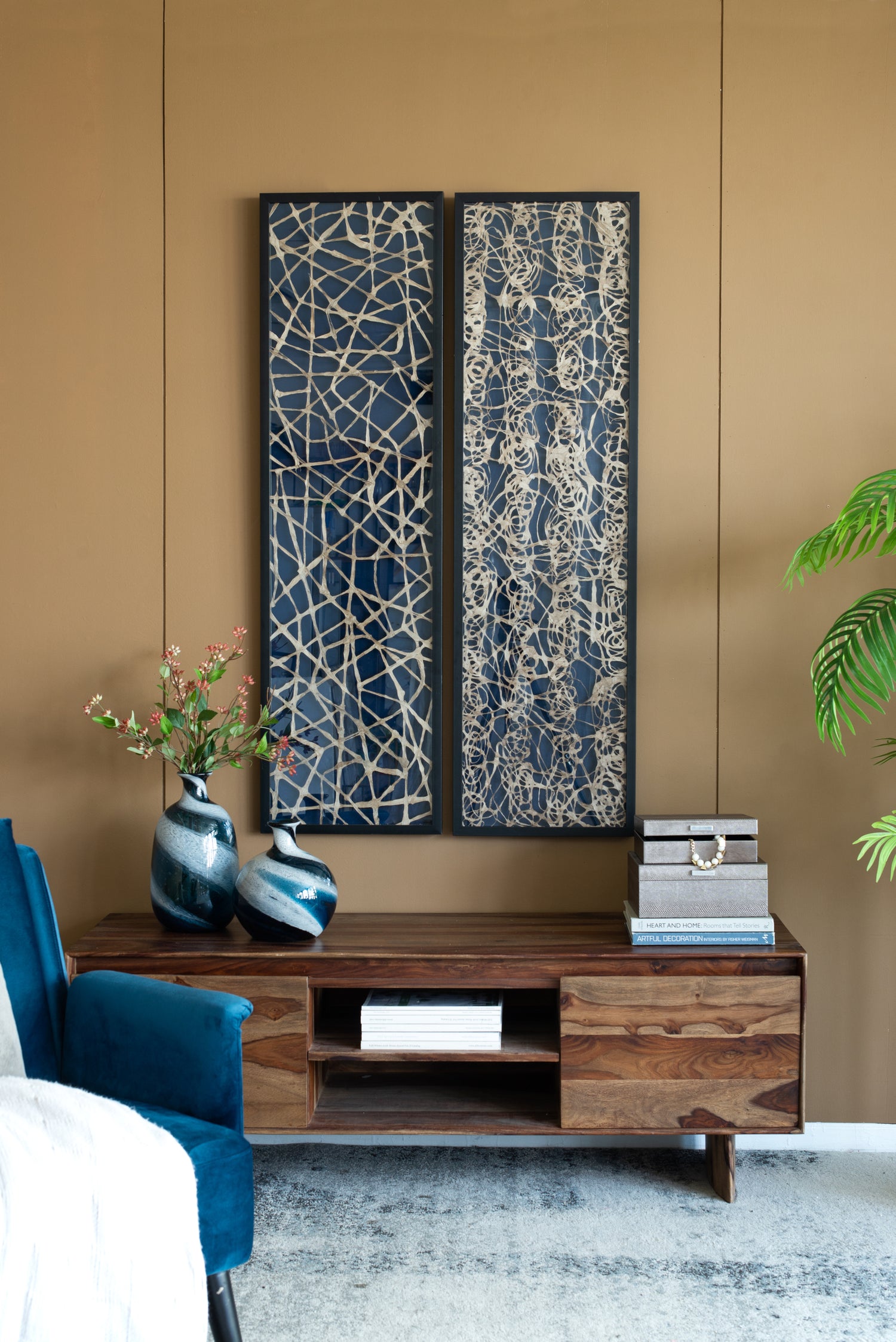 - Place together over a foyer table or as an added element in a transitional office.