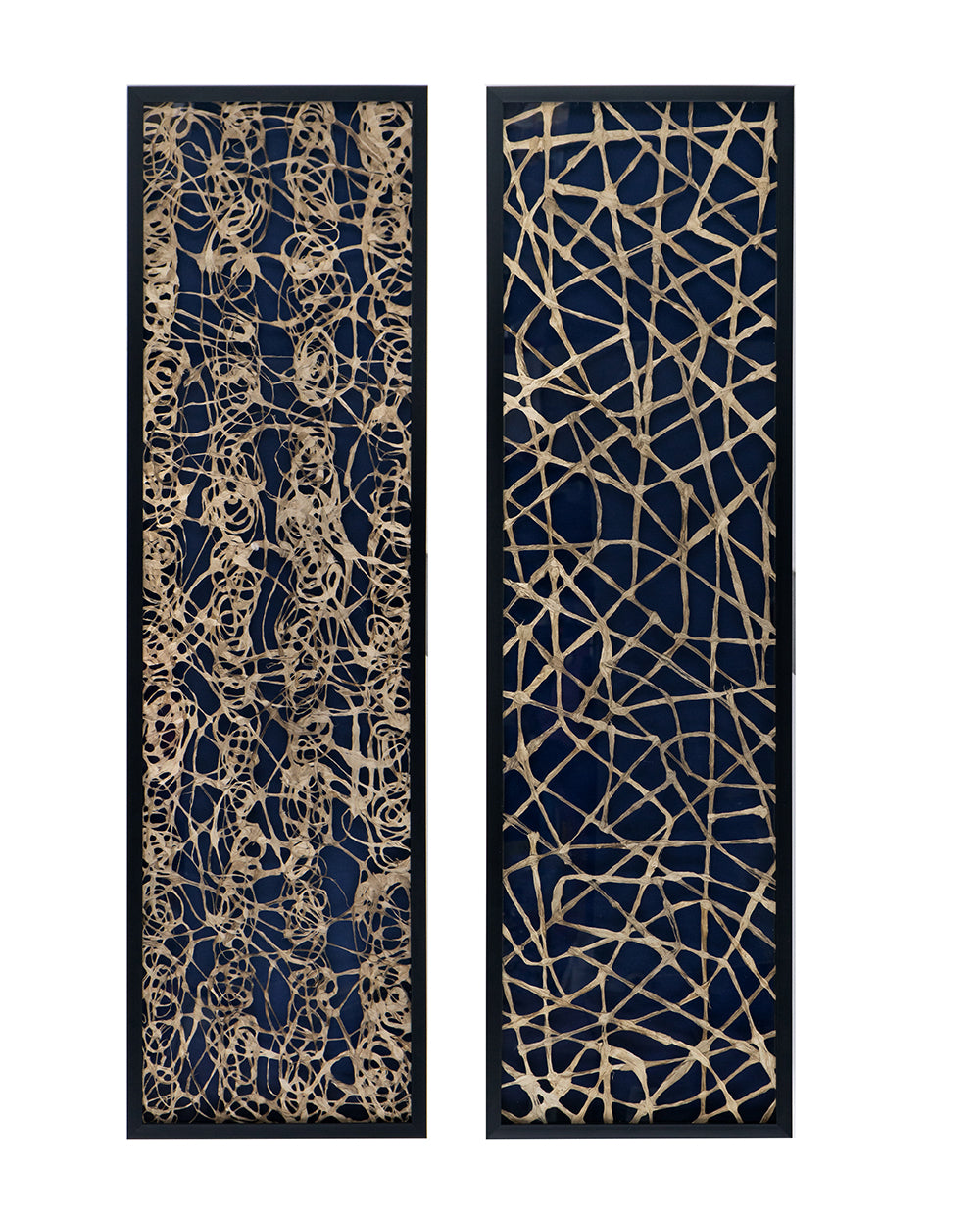 Find new textures in this Set of 2 Tannis Rice Paper Shadow Boxes. Framed in a elegant black the white rice paper really becomes the focal point. Place together over a foyer table or as an added element in a transitional office.