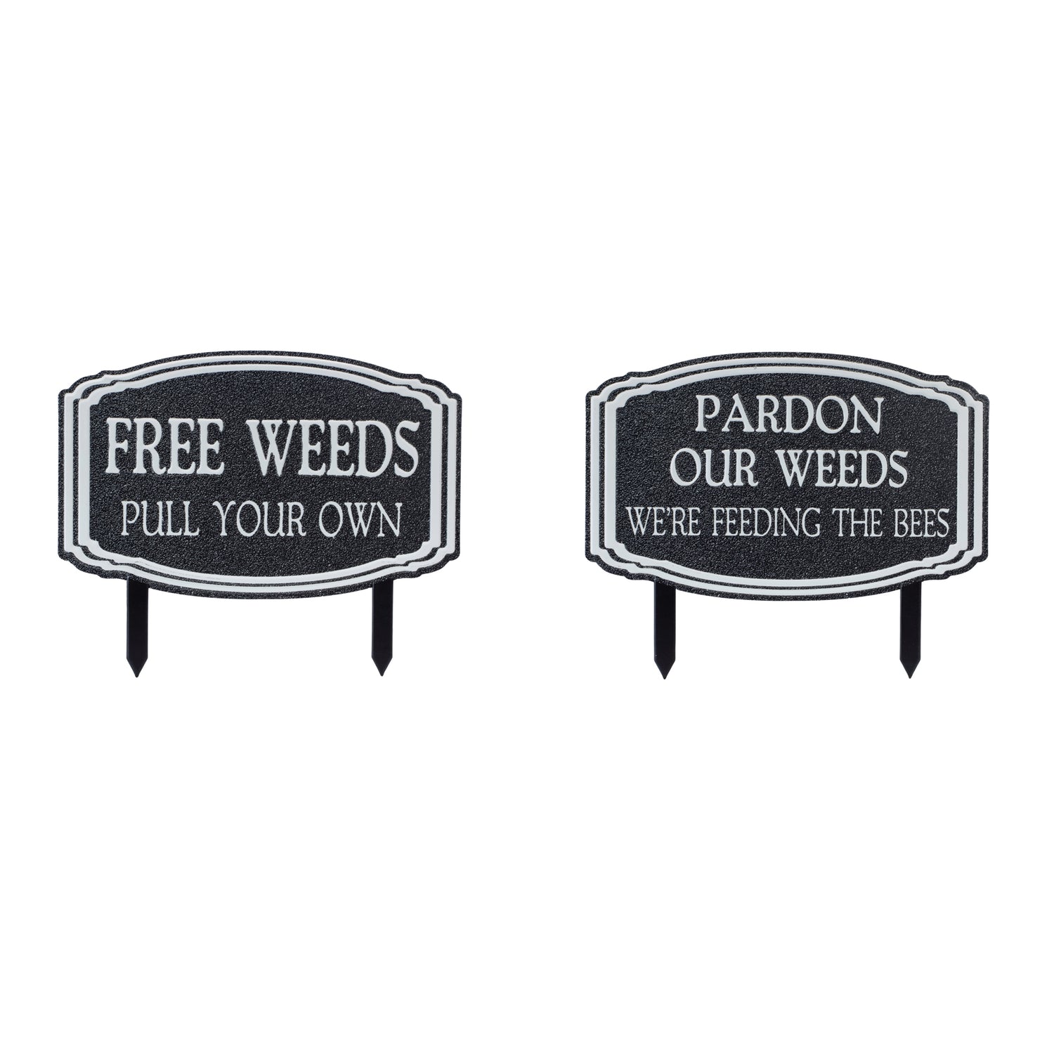 Not only do these signs add a touch of humor to your outdoor space, but they also serve as a gentle reminder to take care of your garden. The "Free Weeds" sign encourages you to take responsibility for your own garden, while the "Pardon Our Weeds" sign reminds you to be mindful of the bees and their important role in our ecosystem.