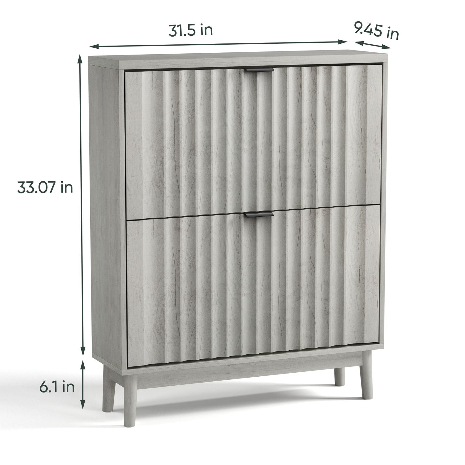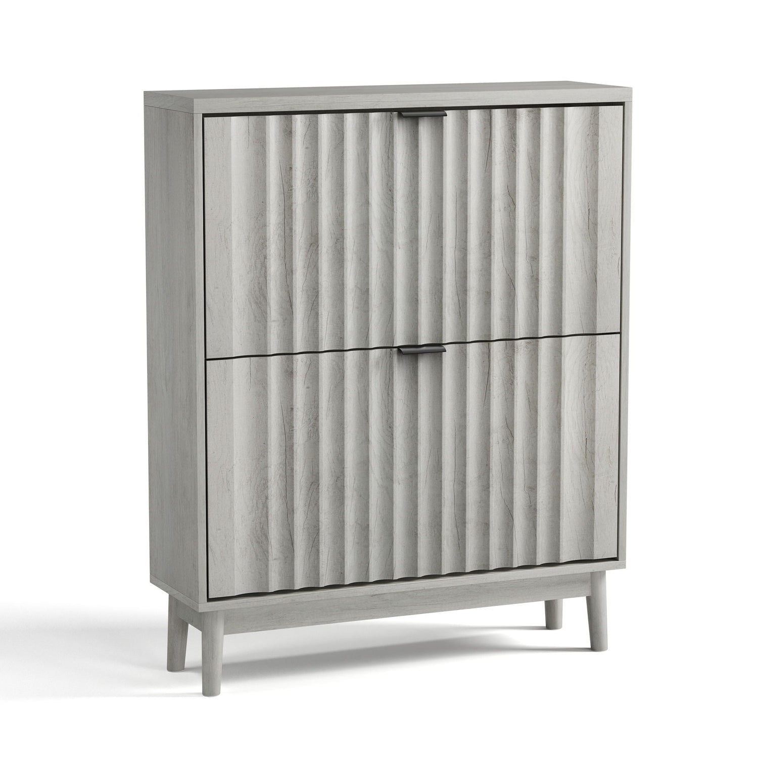 Shoe Cabinet With 2 Flip Drawers, Fluted Shoe Storage Cabinet For Entryway, Free Standing Shoe Storage Organizer With Wave Doors For Heels, Boots, Slippers In Hallway, Living Room - Gray